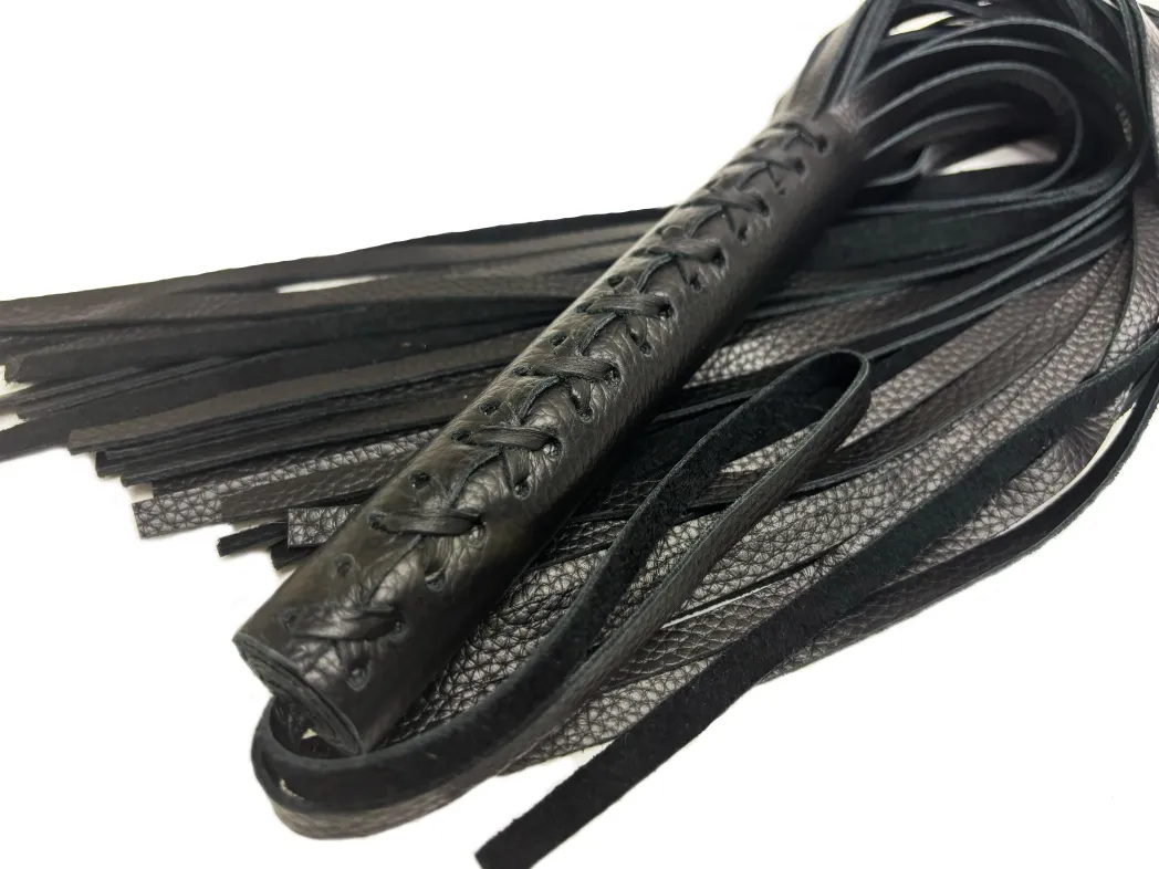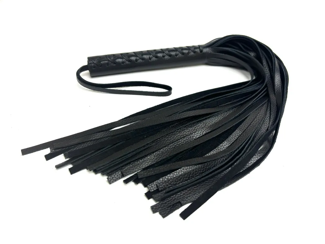 Эта плеть - уникальная модель, выполненная из цельного куска нежной зернистой натуральной кожи высокого качества в классическом черном цвете. Плеть очень пышная и богатая, в ней 50 хвостов! На рукоятке находится плетение, что придает особый шарм, Общая длина аксессуара 57см, мягкие хвосты длиной 40см. Благодаря своей цельной конструкции, данная плеть прослужит Вам долго, хвосты не оторвутся и сохранят свой благородный вид, аксессуар очень надежный и красивый. Для удобства на рукоятке имеется кожаная петелька. Материал: натуральная кожа