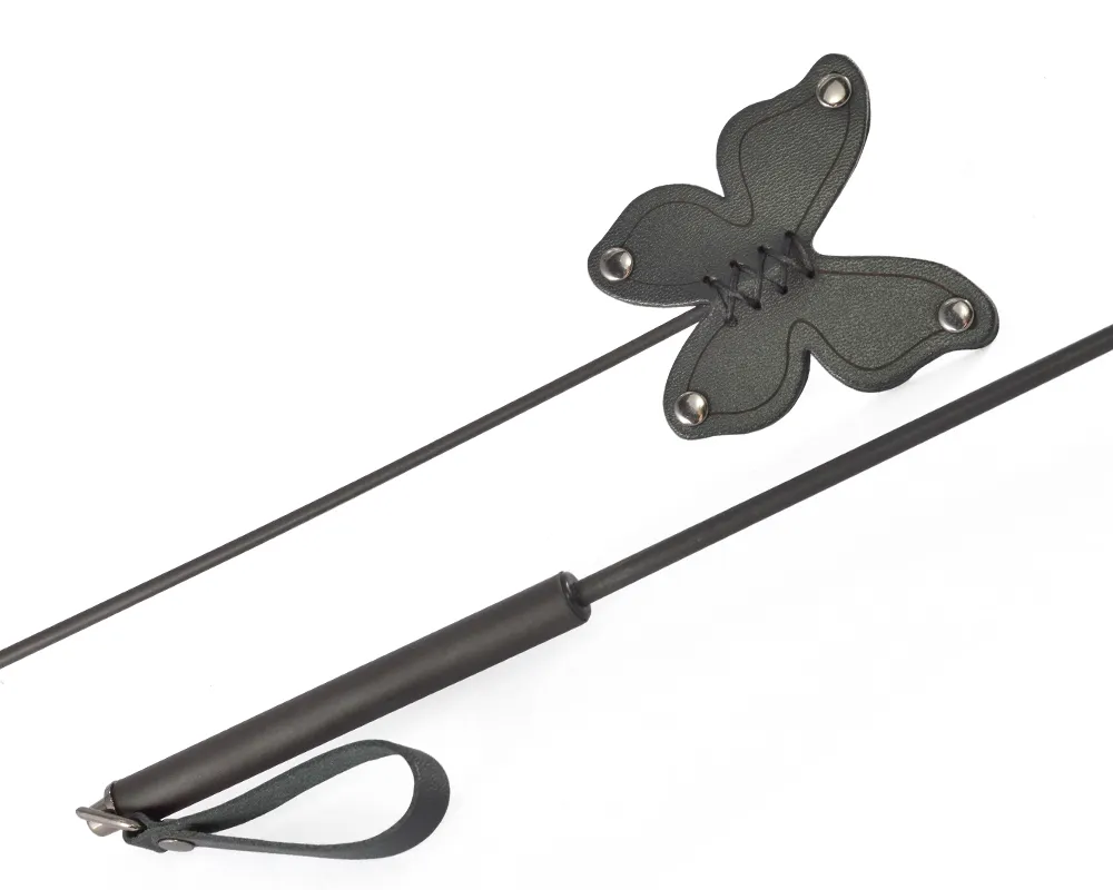 Стек бабочка – предназначен, как для ценителей властной БДСМ игры, так и для "ванильных" сексуальных игр. Имеет прочный и гибкий хлыст длиной 41 см. Металлическая ручка длиной 10 см имеет кожаный ремешок для удобного хранения. Шлепок из натуральной кожи черного цвета в формы бабочки с изящной декоративной строчкой. Металлическая фурнитура имеет ниrелевое покрытие. Общая длина 56 см.