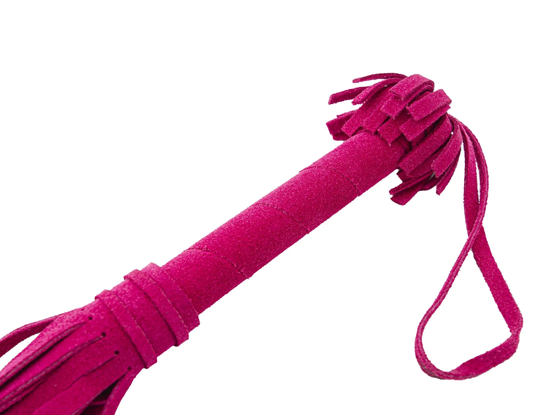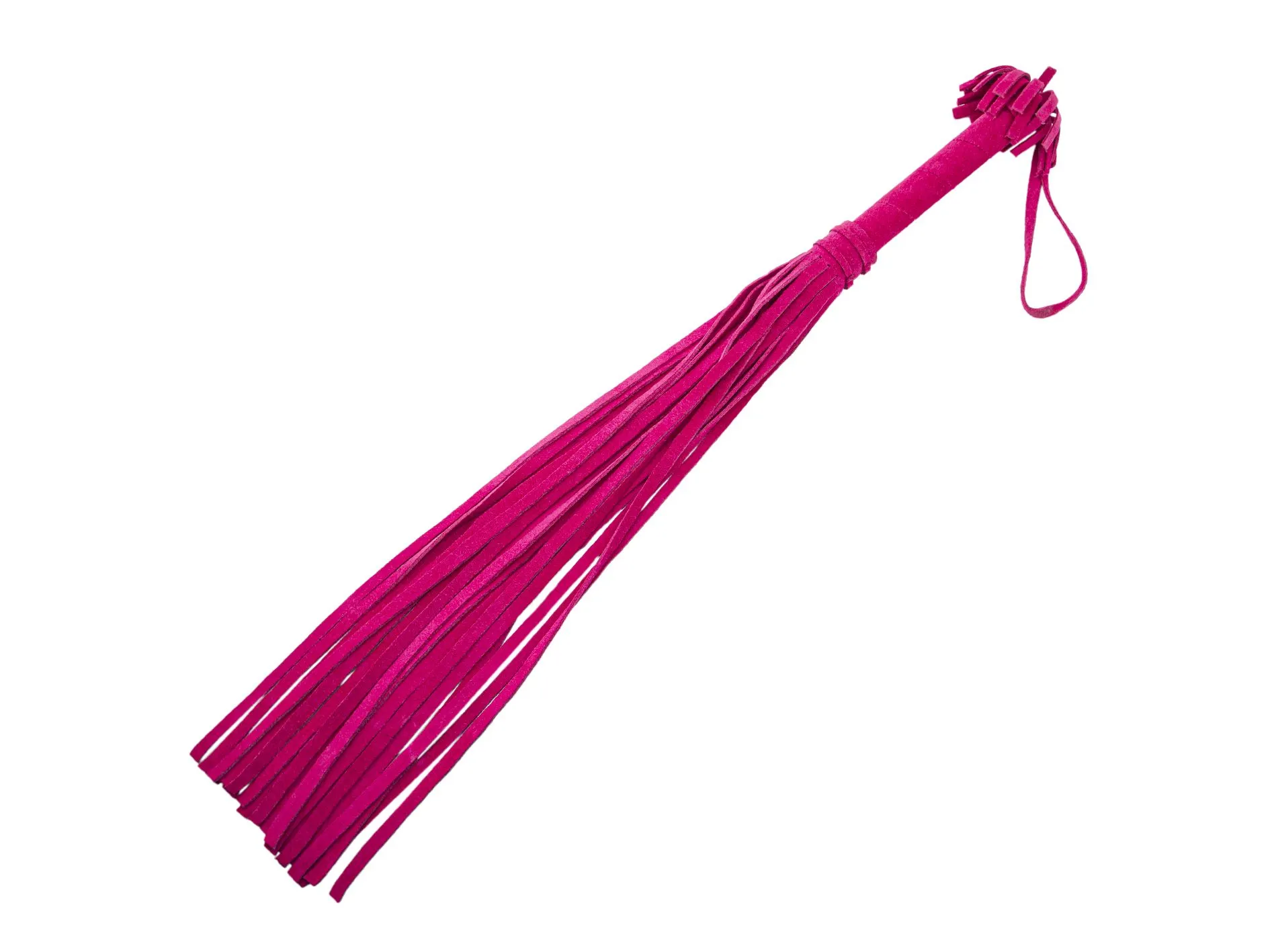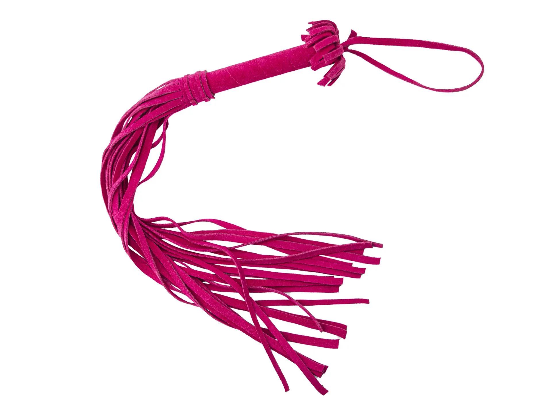 Эта плеть в ярком розовом цвете понравится тем, кто хочет попробовать что-то новое и не боится острых ощущений. С помощью этого аксессуара Вы сможете раздразнить партнера легкими ударами перед началом любовной игры или, наоборот, наказать его более ощутимыми ударами. Плеть выполнена из качественной велюровой кожи и состоит из жесткой рукояти и 22 хвостов шириной 1 см. Длина рукояти составляет 10 см, она украшена бахромой, а также имеет удобную петельку для ношения плети на запястье.
