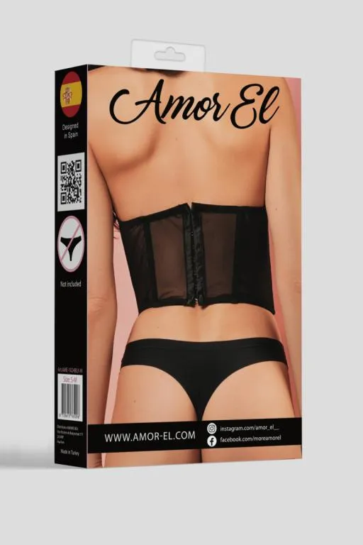 Корсет с косточками выполнен из полупрозрачной сеточки. Вставки вдоль корсета визуально делают силует стройнее. Открытая чашка у корсета дает возможность комбинировать его с повседневными топами и блузами, а также даёт возможность надеть пестисы и добавить еще больше сексуальности и игривости в кокетливый образ.