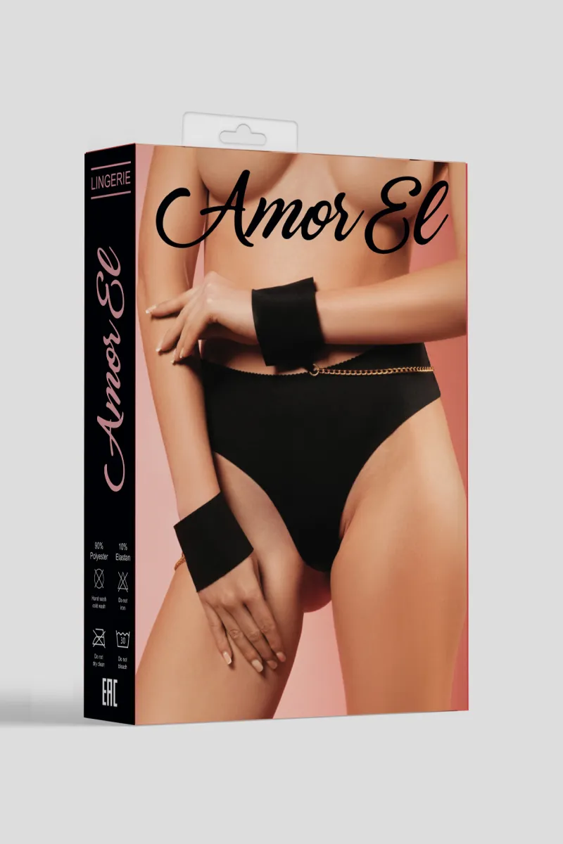 Бесшовные чёрные трусики-танго с наручниками на цепочках. Трусики имеют соблазнительный вырез на ягодицах и кольцо, соединяющее трусики с цепочкой и наручниками. Эффектный вырез на ягодицах придаст вашему образу дерзости, а наручники добавят пикантности и приятно удивят вашего мужчину.