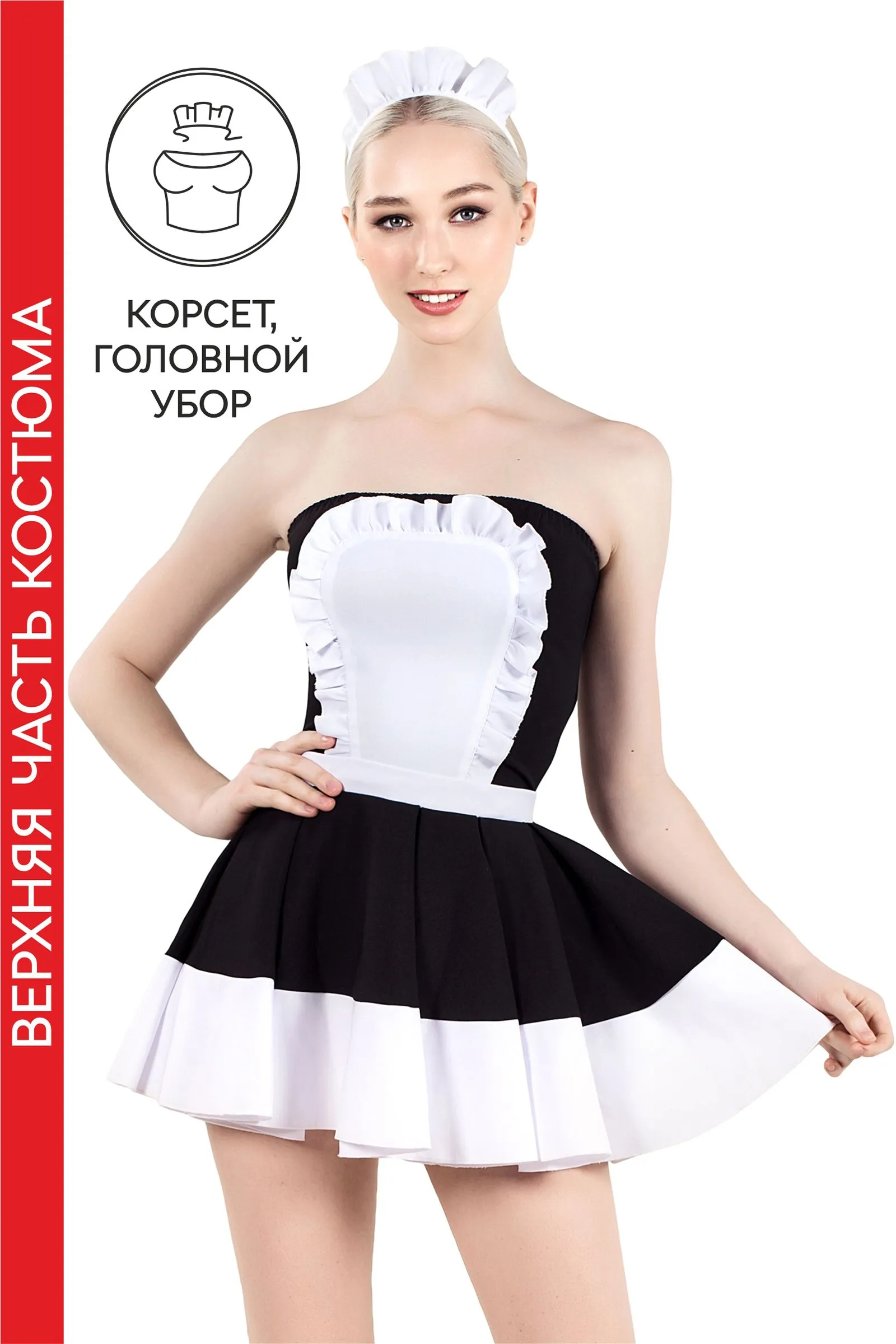 —Верхняя часть костюма «Горничная», Pecado BDSM, корсет, головной убор, черно-белый, 42