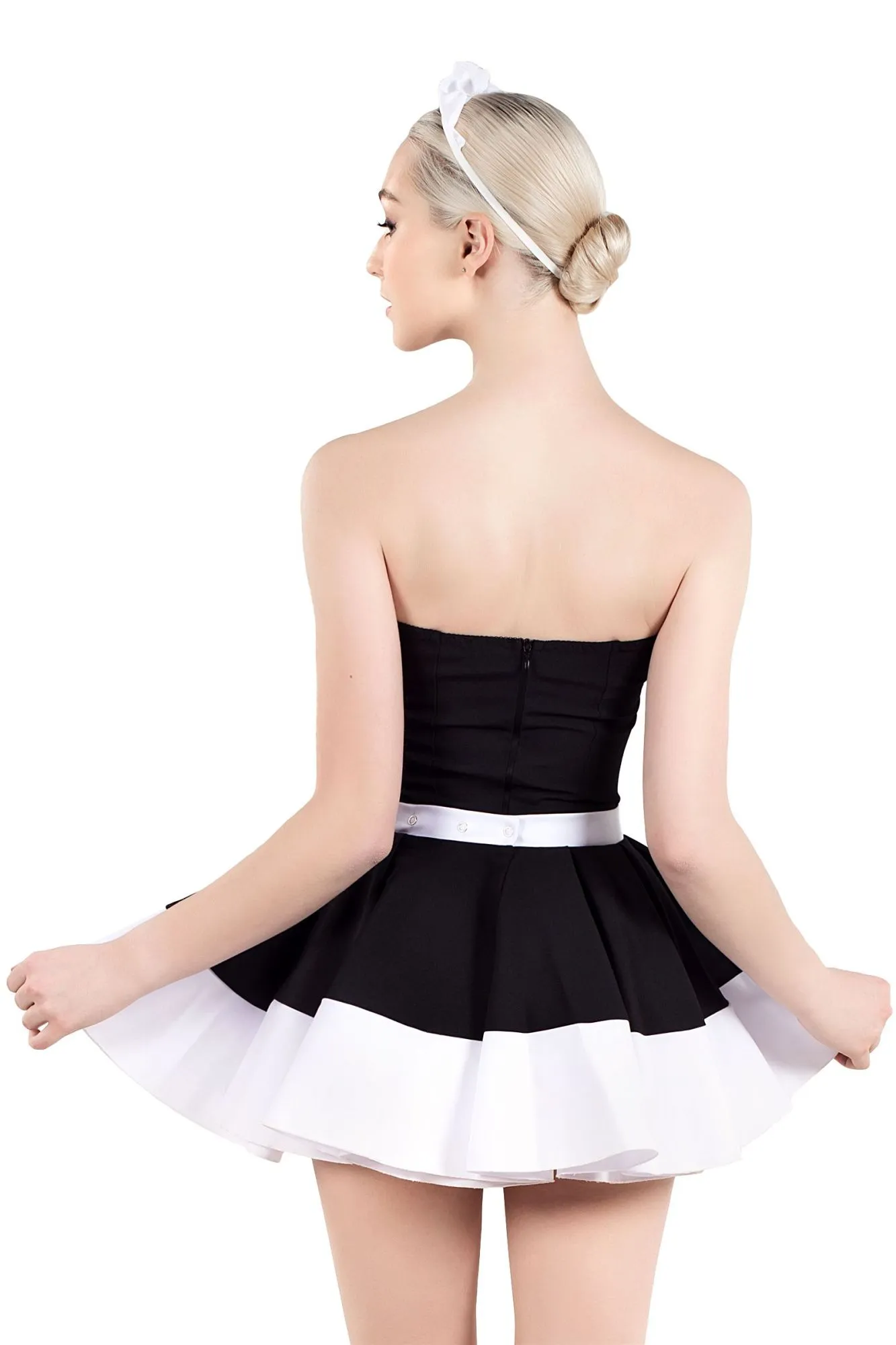 Нижняя и верхняя часть комплекта приобретаются отдельно. Именно так, Вы сможете подобрать для себя оптимальный размер. Мечтаете быть кокетливой горничной в ролевых играх? Осуществляйте самые яркие фантазии с эротическим костюмом от Pecado. Верхняя часть комплекта выполнена из черно-белого корсета. Материал качественный, прочный, нежный. Корсет изящно подчеркивает силуэт тела и красоту женской груди. Он удобно надевается с помощью надежной молнии сзади, хорошо фиксируется, и очень быстро снимается. Возбуждающий образ дополняет стильный ободок. Отдайтесь всем порывам чувств. Вместе с Pecado. ● Состав комплекта – корсет, ободок. ● Материал –100% полиэстер. ● Качественная фурнитура. ● Цвет – черный, белый. ● Сделано в России. ● Размерный ряд 40, 42, 44, 46 (Соответствует Российской размерной сетке).
