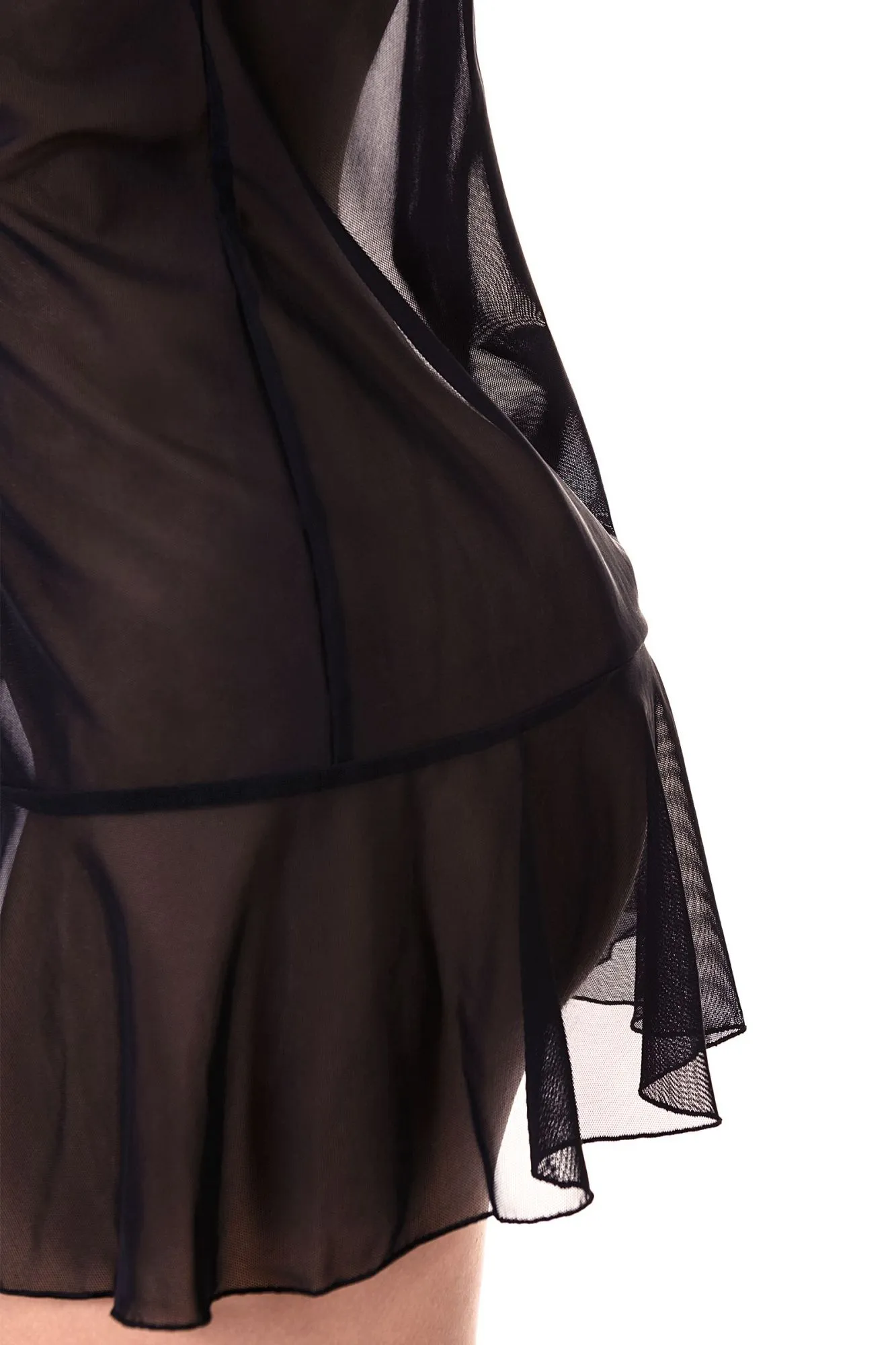 Комбинация Erolanta® Margarita с открытой грудью, из эластичной сетки со вставками кружева. Бюст и подол декорированы мягкими оборками. Регулируемые бретели. *Допускается замена кружева на аналогичное.