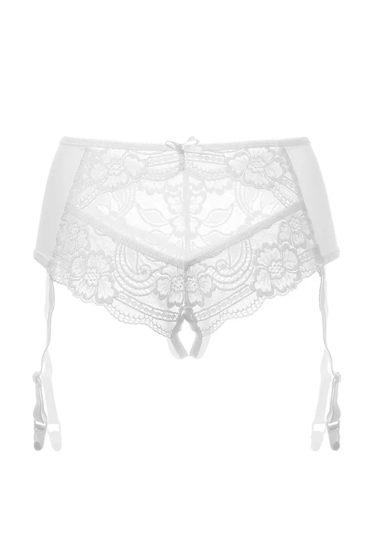 Эротические трусики-пояс Erolanta® Sheila, эластичные, из стрейч-сетки со сложными кружевными вставками, с вырезом сзади, без боковых швов, с атласными бантиками. Съемные регулируемые пажи. *Допускается замена кружева на аналогичное. Чулки в комплект не входят. На видео трусики Erolanta® Sheila дополнены идеально сочетающимся бралетт Erolanta® Nelly.