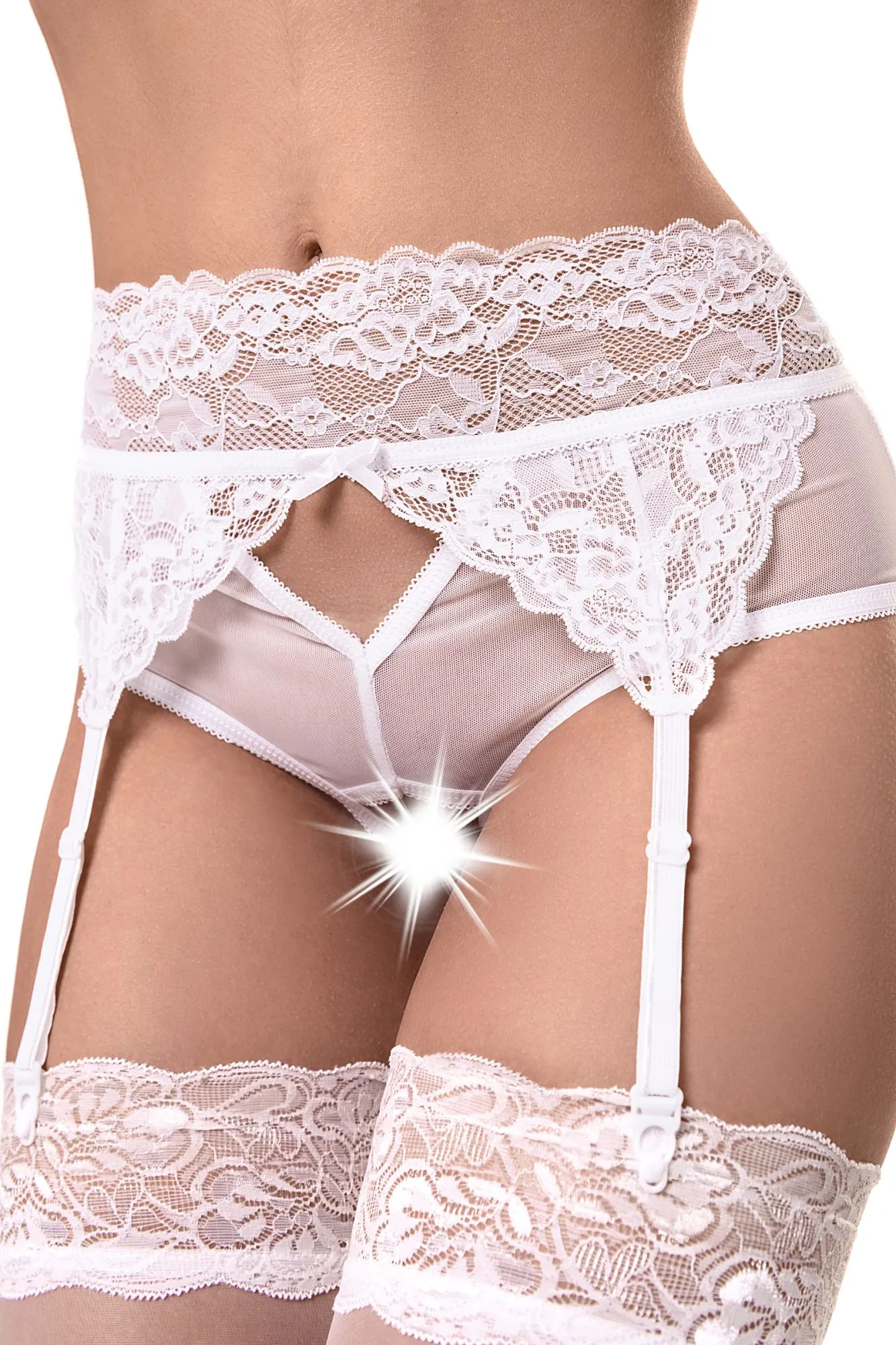Эротические трусики-пояс Erolanta® Iveta из эластичной сетки со вставками кружева, с декоративными вырезами. Имитация пояса со свободным ажурным краем. Атласный бантик спереди. Высокая посадка. Регулируемые пажи. *Допускается замена кружева на аналогичное. Чулки в комплект не входят. На видео трусики-пояс Erolanta® Iveta дополнены бралеттом Erolanta® Odette.