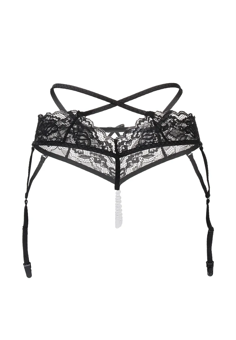 Эротические трусики-пояс с жемчужной нитью Erolanta Wendy кружевные, черный (42-44) в пакете