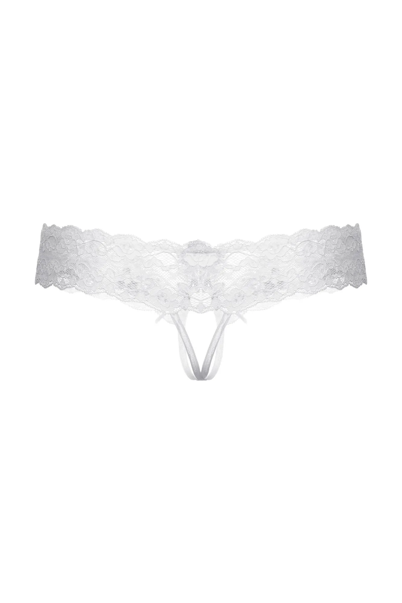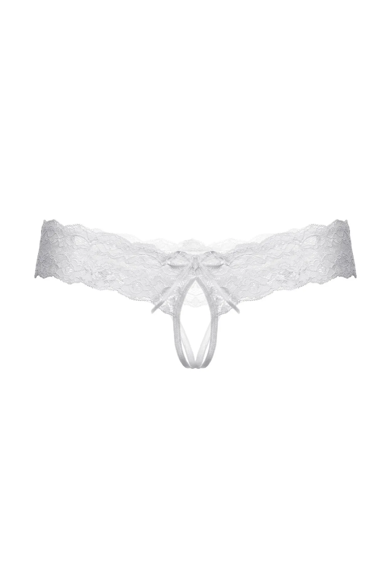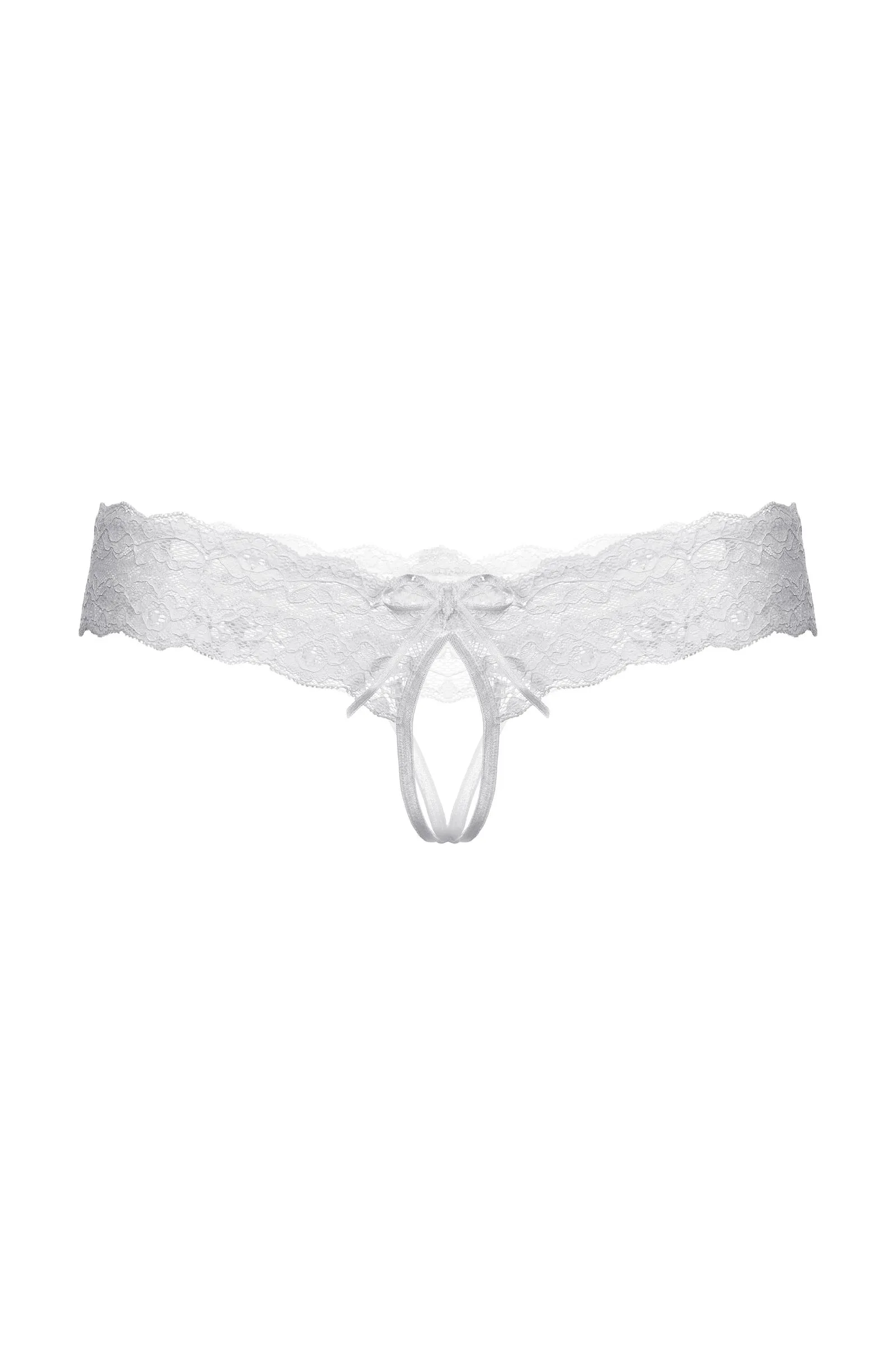 Трусики кружевные с открытым доступом выполнены из роскошного кружева. Широкая кружевная резинка с необычно углубленным верхним краем подчеркивает соблазнительную линию бедер. Спереди декорированы кокетливым бантиком.