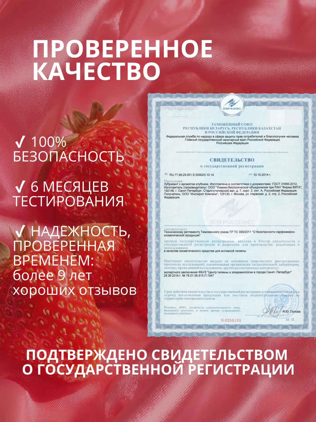 Лубрикант с ароматом клубники на водной основе не содержит калорий. Обеспечивает мягкое скольжение. Только пищевые компоненты в составе. Без красителей. Подходит для использования с презервативами и интимными игрушками. Легко смывается водой.   Способ применения: легкими движениями нанесите лубрикант перед половым актом. Необходимое количество лубриканта подбирается индивидуально. После нанесения тубу следует плотно закрыть.  Состав: вода очищенная, глицерин, гидроксиэтилцеллюлоза, бензоатнатрия, сорбат калия, пропиленгликоль, ароматизатор пищевой, сахаринат натрия, лимонная кислота.