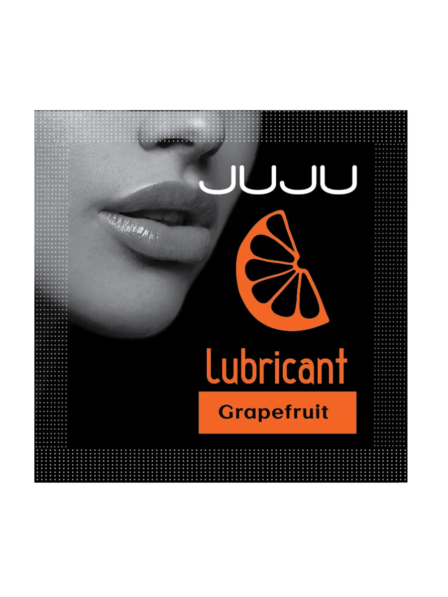Съедобный лубрикант со вкусом грейпфрута отлично подойдет для любого вида близости. Водная основа смазки позволяет разнообразить интимную жизнь, обеспечивая продолжительное шелковистое скольжение. Лубрикант можно использовать с любыми интим игрушками, а также с презервативами. Состав: вода очищенная, глицерин, гидроксиэтилцеллюлоза, бензоат натрия, сорбат калия, пропиленгликоль, ПЭГ-40 гидрогенизированное касторовое масло, ароматизатор пищевой, сахаринат натрия, лимонная кислота, объем саше – 3 мл, производитель – JuJu (Россия).  срок годности-3 года.