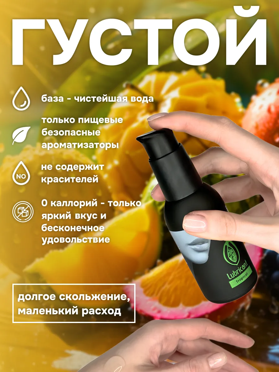 Съедобный лубрикант со вкусом тропических фруктов отлично подойдет для любого вида близости. Водная основа смазки позволяет разнообразить интимную жизнь, обеспечивая продолжительное шелковистое скольжение. Лубрикант можно использовать с любыми интим игрушками, а также с презервативами. Состав: вода очищенная, глицерин, гидроксиэтилцеллюлоза, бензоат натрия, сорбат калия, пропиленгликоль, ароматизатор пищевой, сахаринат натрия, лимонная кислота, объем – 100 мл, производитель – JuJu (Россия).  срок годности-3 года.