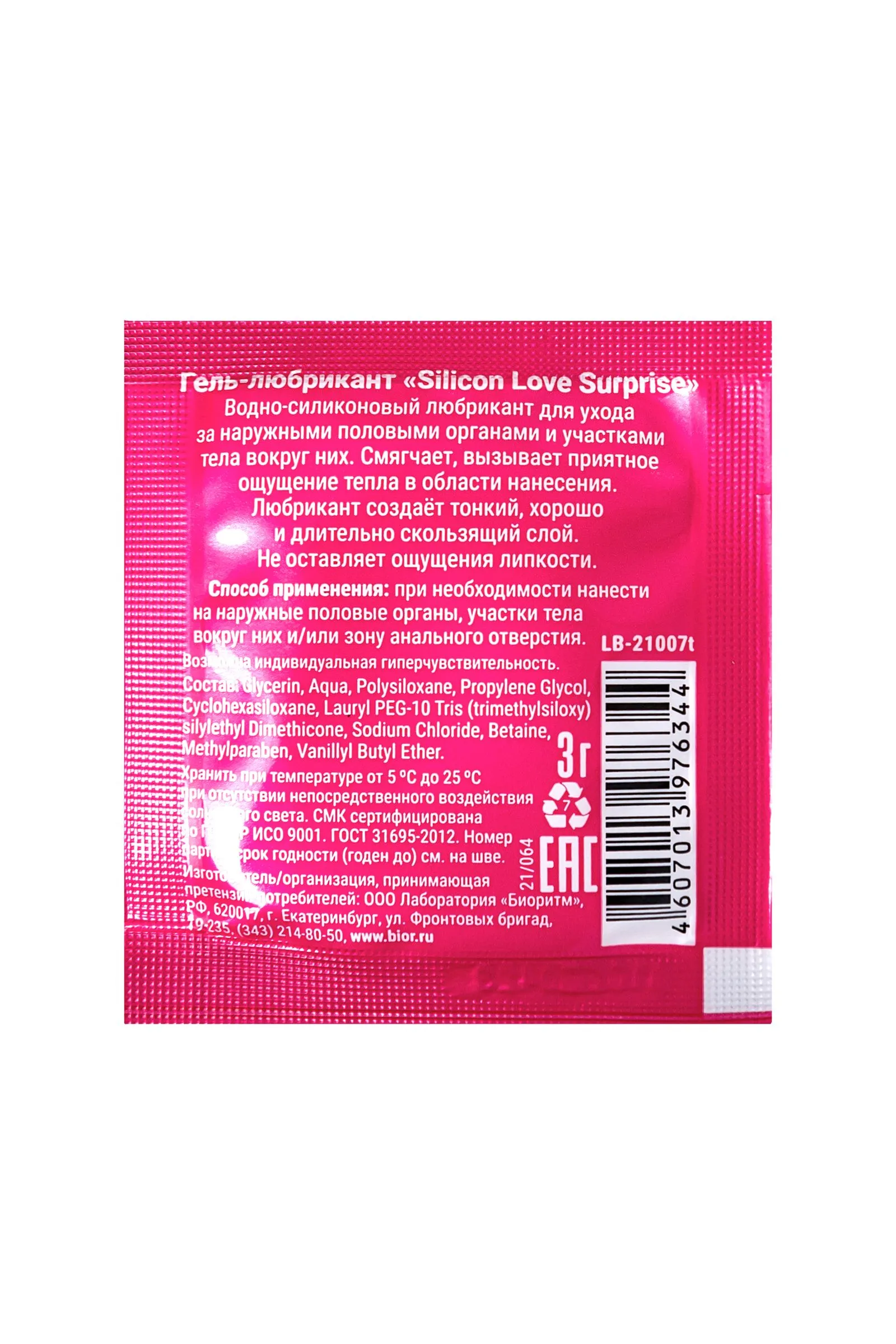 Гель-лубрикант Silicon Love Surprise на силиконовой основе, 3 г по 20 шт в упаковке