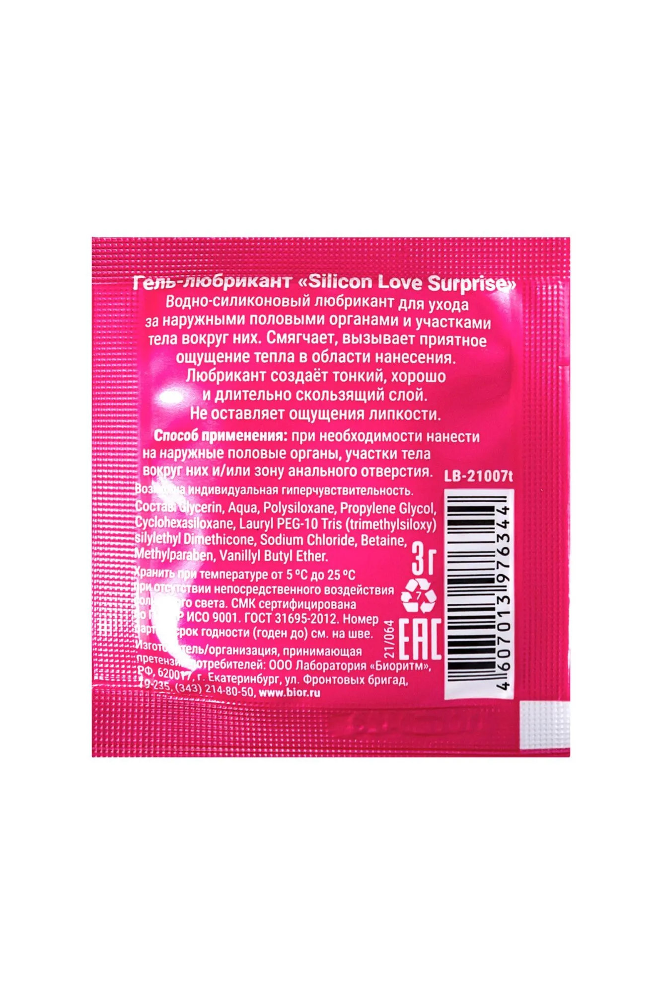 —Гель-лубрикант Silicon Love Surprise на силиконовой основе, 3 г по 20 шт в упаковке