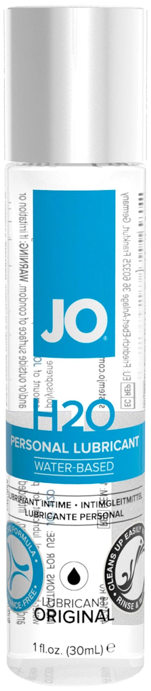 JO H2O - интимный лубрикант на водной основе. Входящий в состав глицерин исключительно растительного происхождения. Обеспечивает комфортное нежное скольжение без липкости.