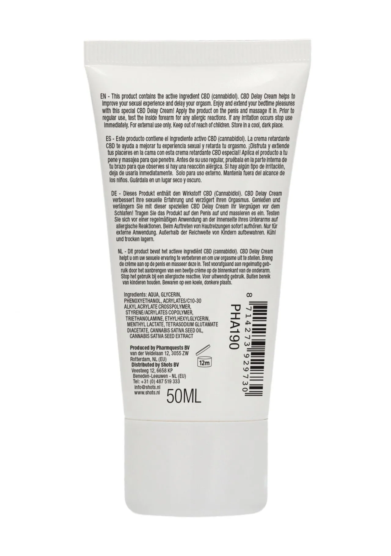 Крем-пролонгатор Natural CBD содержит активный ингредиент CBD (каннабидиол).