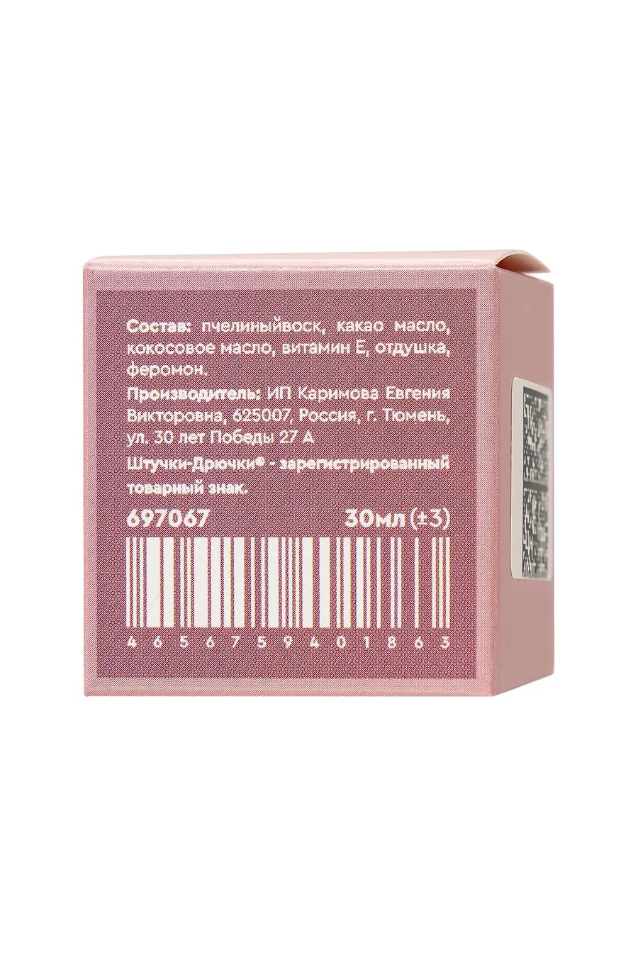 Пчелинный воск, какао масло, кокосовое масло, витамин Е , отдушка, феромон