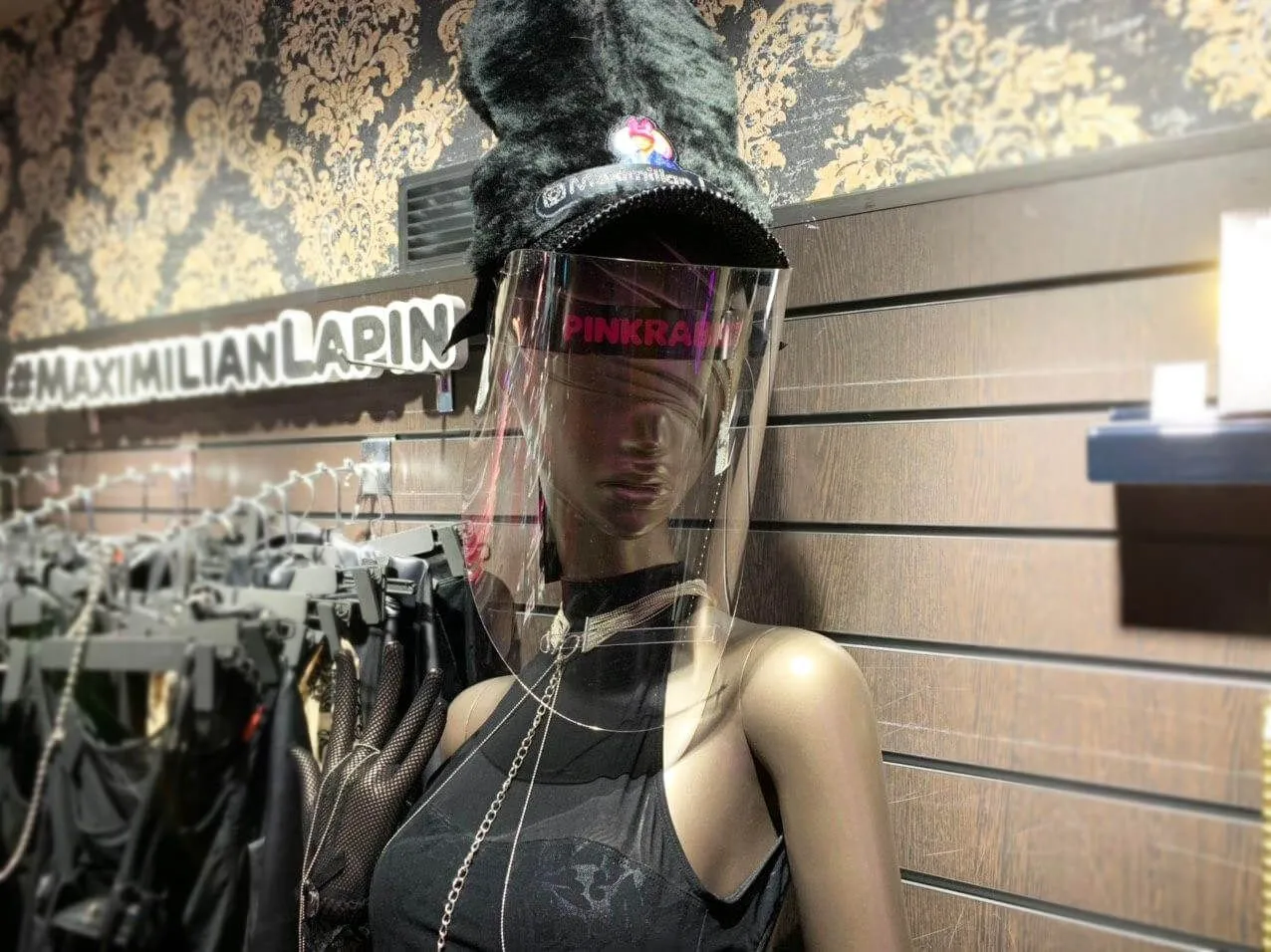 Защитная маска-экран от PINK RABBIT предназначена для защиты органов дыхания и глаз от попадания брызг и жидкостей.