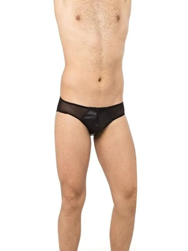 Мужские трусы от бренда Lapin Rose сделаны из интересного сочетания натуральной кожи черного цвета и прозрачной микросетки. Трусы будут прекрасно облегать бедра, при этом акцентируя внимание на возбуждающем бугорке, прикрытым кожей. Сзади, благодаря прозрачности материала, трусы оставят ягодицы почти полностью открытыми взору Вашей партнерши, позволяя ей любоваться Вашим телом и фантазировать о предстоящей близости. Если Вы хотите удивить свою возлюбленную, то подобное нижнее белье подойдет для такого случая.