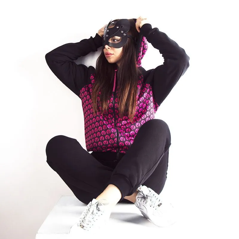 Яркий. Стильный. Удобный. Приятный к телу. Это всё, что вам нужно знать, чтобы незамедлительно приобрести этот двусторонний костюм-двойку из толстовки и брюк. В нём вам обеспечено внимание и восхищение, потому что сочетание розового и чёрного носить в повседневной жизни может позволить себе такая же яркая, как этот костюм, и запоминающаяся, как Розовый кролик, личность. Хлопковая ткань позволяет коже дышать. В сочетании с блестящими аксессуарами костюм будет уместно смотреться и на вечеринке. А можно просто надеть тёплые носочки и остаться дома, потому что он идеально подходит в качестве домашней одежды.
