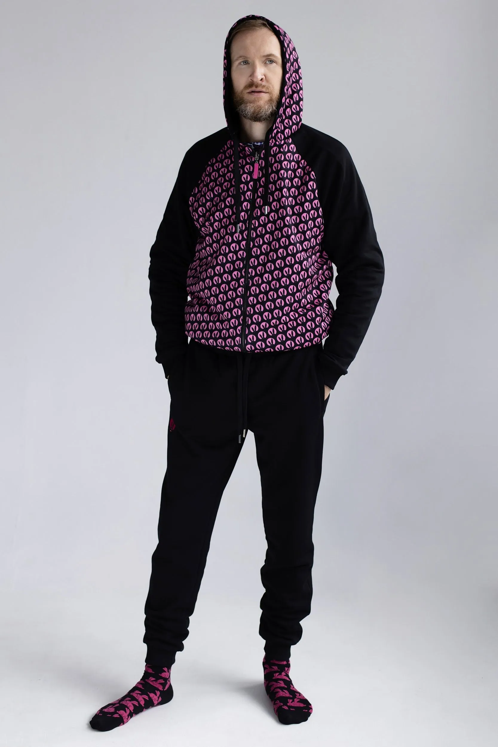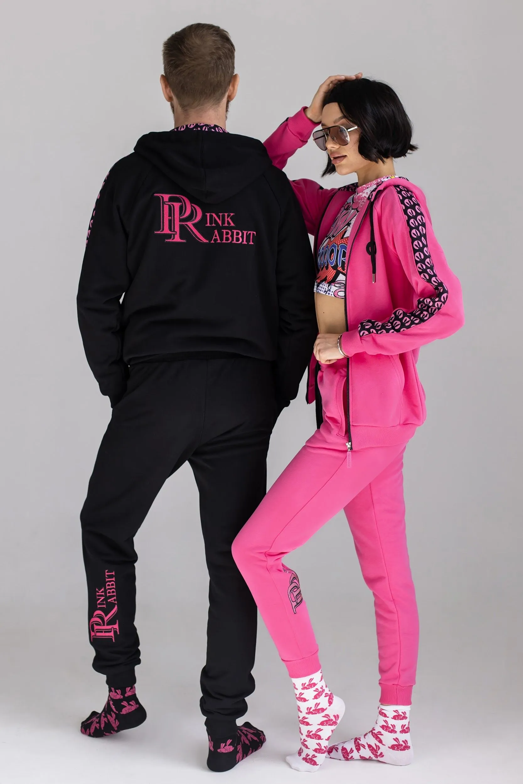 Стильный и универсальный костюм от Pink Rabbit подойдет как для занятий спортом, так и для каждодневных дел. Приятная на ощупь ткань позволяет активно двигаться и работать в костюме. Контрастные фирменные цвета –черный и розовый не останутся незамеченными. На форме имеется принт «Розового Кролика», поэтому комплект можно подарить истинным фанатам нашего интим-бутика.