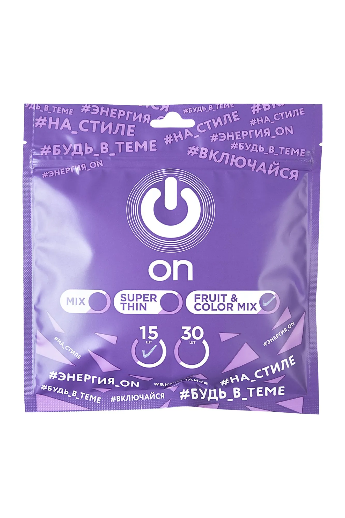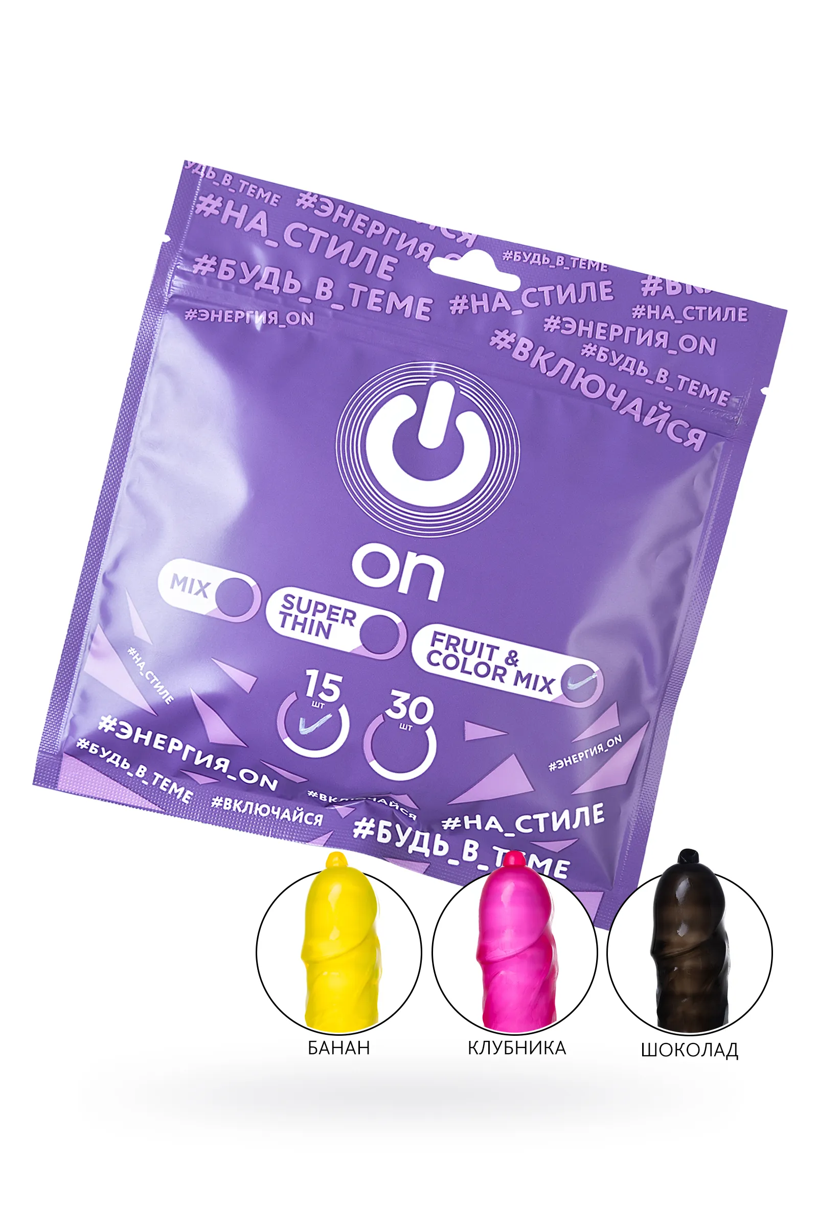 —Презервативы On, fruit, color, ассорти, аромат, 18,5 см, 5,4 см, 15 шт.