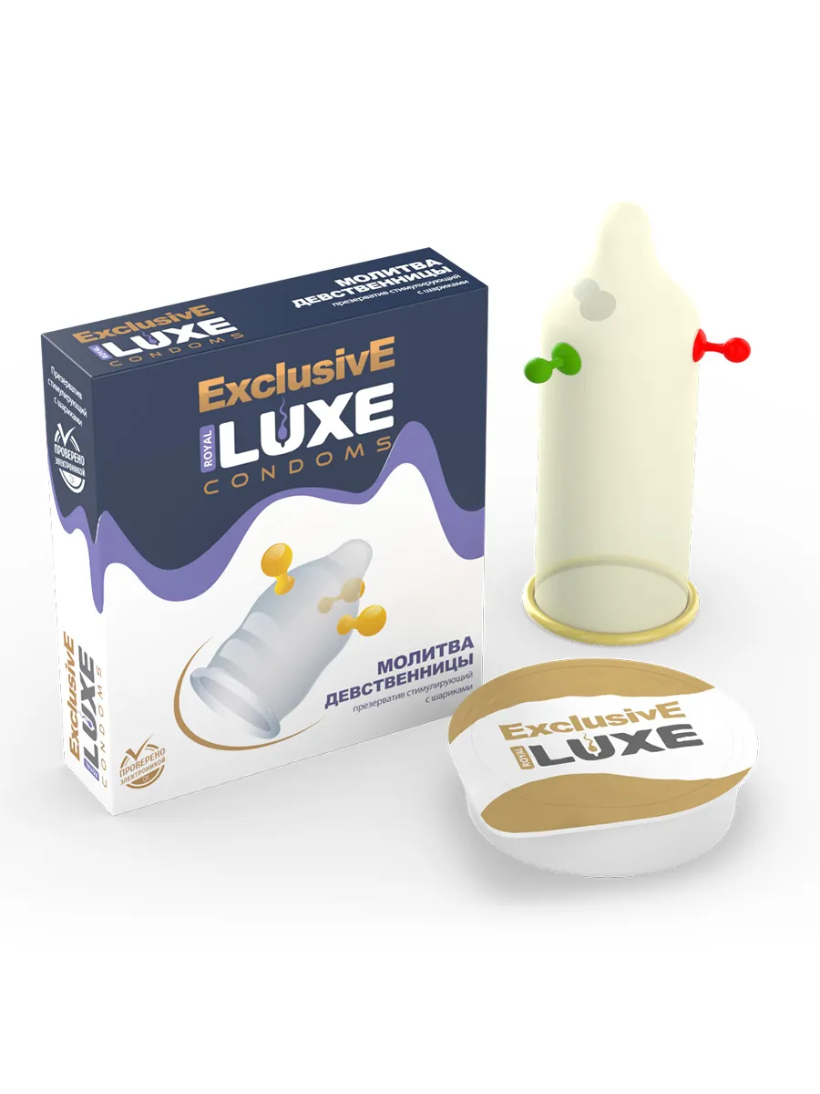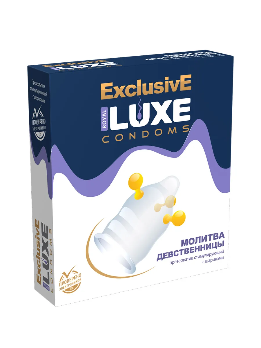 Презерватив «Молитва девственницы» из серии Exclusive от бренда Luxe снабжен тремя крупными шариками на конце, благодаря которым довести до экстаза свою возлюбленную будет проще простого. Этот эластичный презерватив гарантирует Вам безопасность и эффективно защитит Ваше удовольствие от любых возможных негативных последствий.