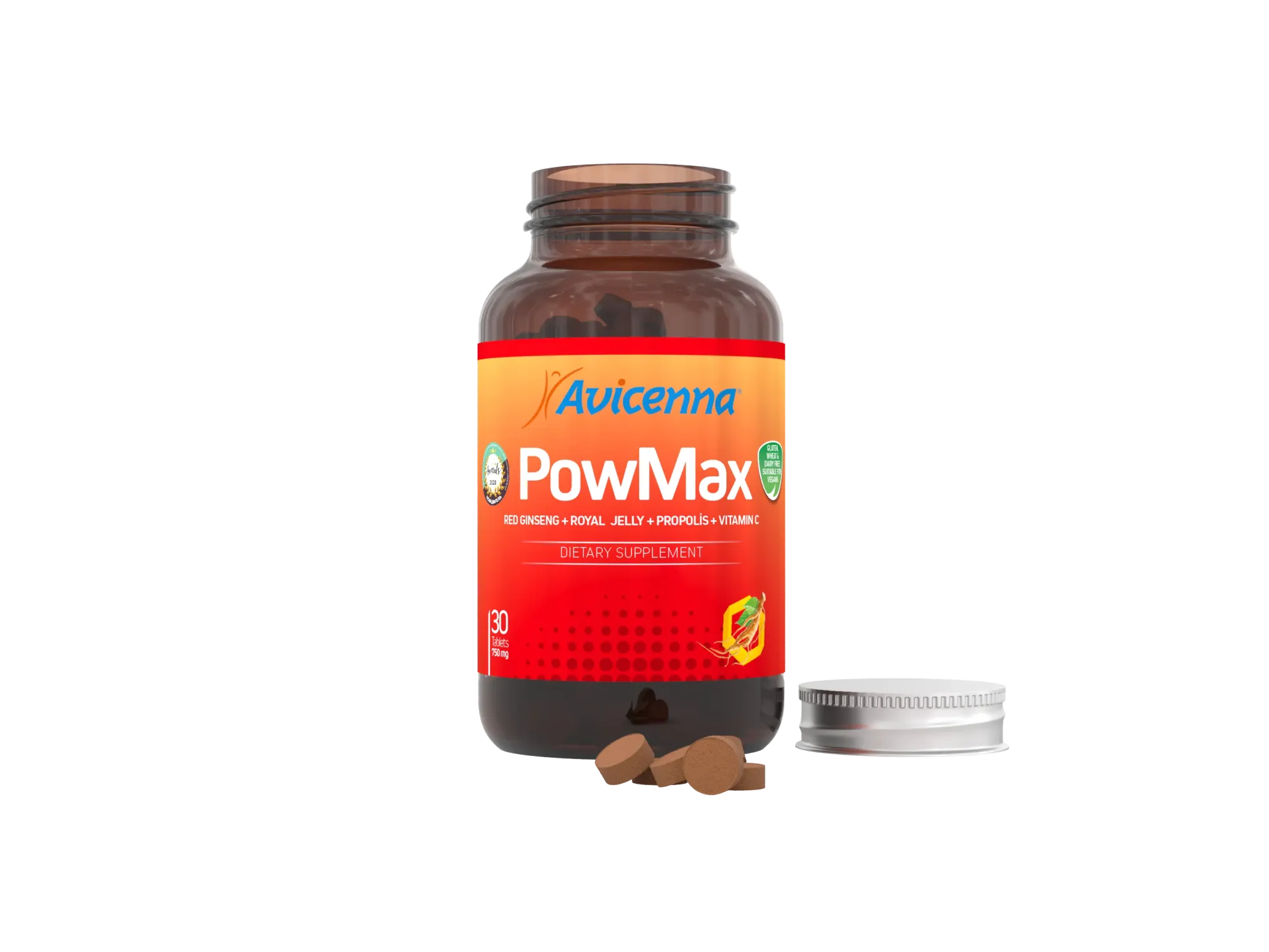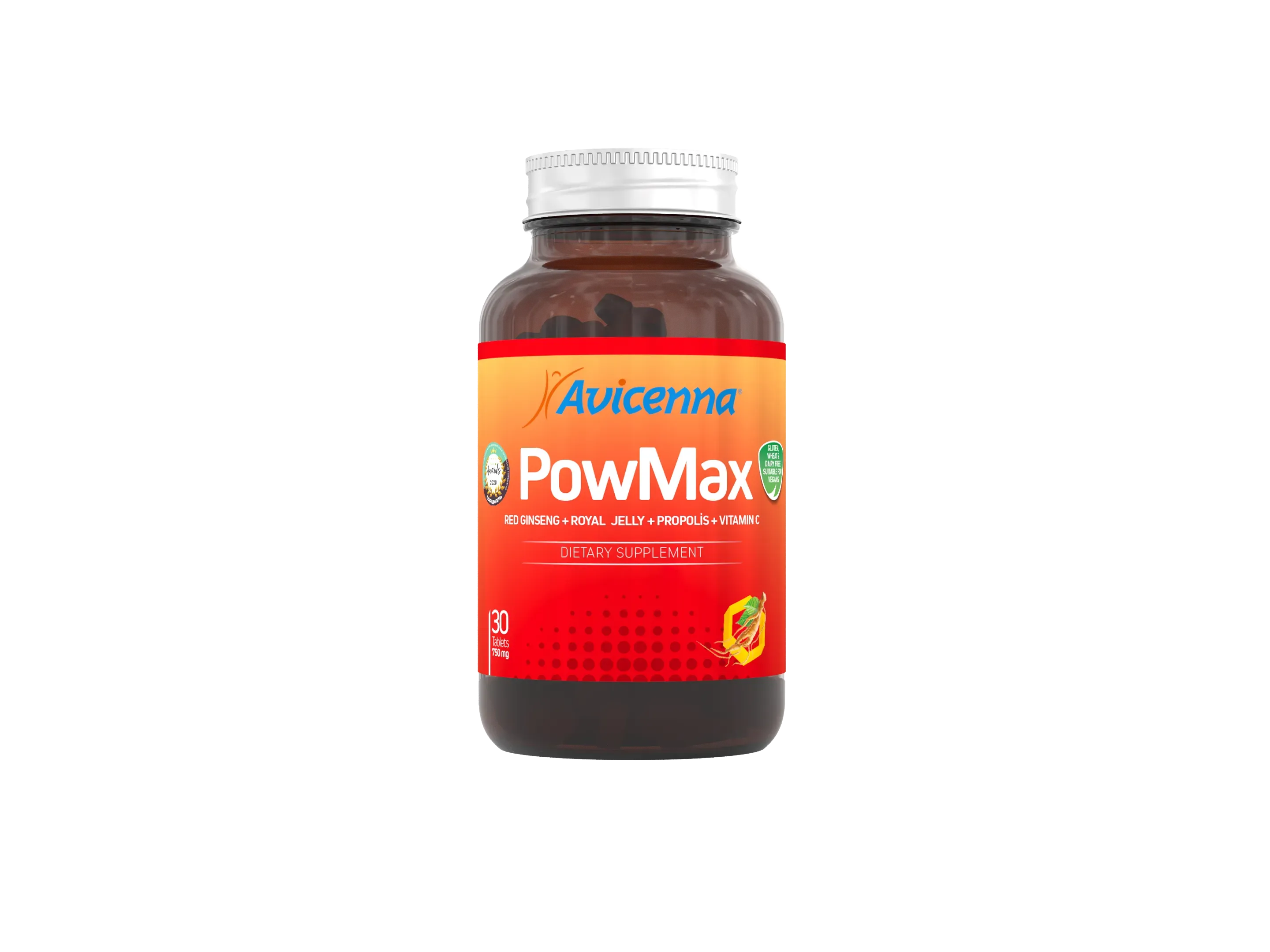 Корень красного женьшеня, маточное молочко, цветочная пыльца, плоды шиповника, прополис, диоксид кремния (носитель), ксантановая камедь (носитель), экстракт корня красного женьшеня, Витамин С (L-аскорбиновая кислота), магниевая соль стеариновой кислоты (носитель)