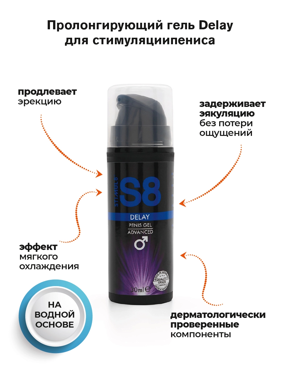 Продлите удовольствие вместе с невероятным пролонгирующим гелем для члена S8 Delay Gel!