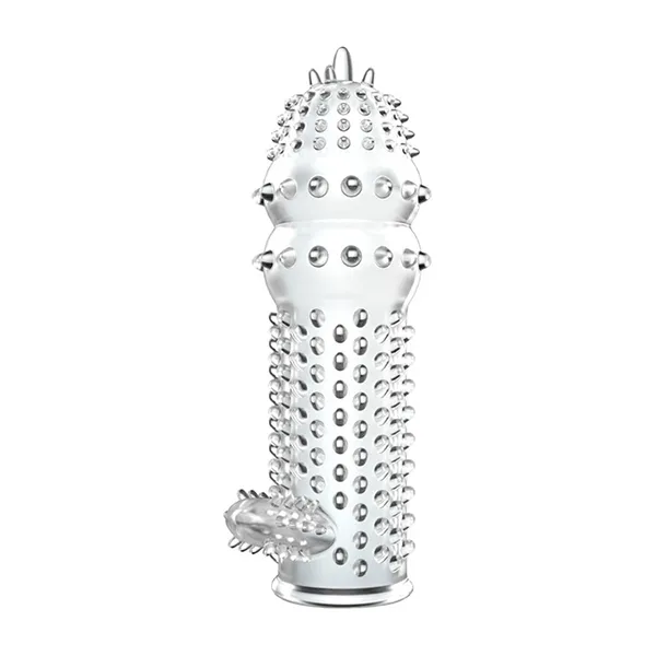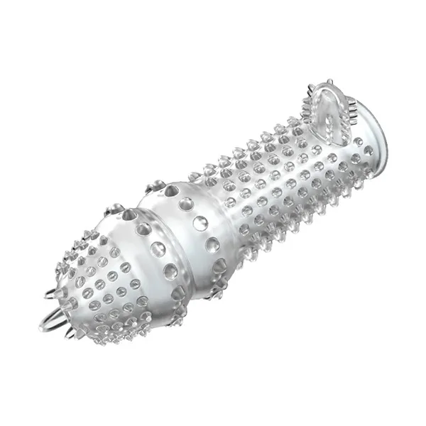 Насадка на фаллос с закрытой головкой, хорошо тянется. Поверхность с пупырышками и мини-усиками для усиления чувствительности эрогенных зон внутри влагалища. Способствует продлению времени сексуального контакта. Изменяющийся рельеф, мягкие шипы различной длины, небольшой отросток для стимуляции клитора.