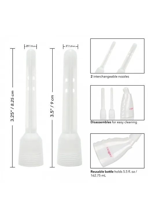 Ultimate Douche - мощная многоразовая очистительная система для интимной гигиены. Она включает в себя два варианта насадок. Гладкий тонкий наконечник обеспечивает легкое проникновенире и комфортную очистку. Многонаправленный наконечник обеспечивает яркую стимуляцию и более глубокое промывание.