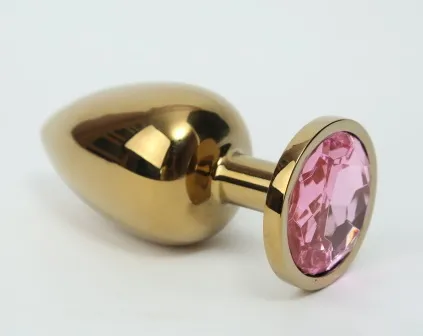 Анальная пробка металл 4х9,5 золото розовый страз 47006-2MM