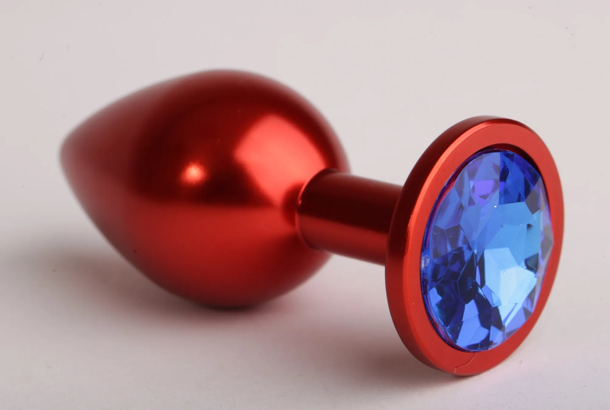 Анальная пробка металл красная с синим стразом 7,6х2,8см 47414-3MM