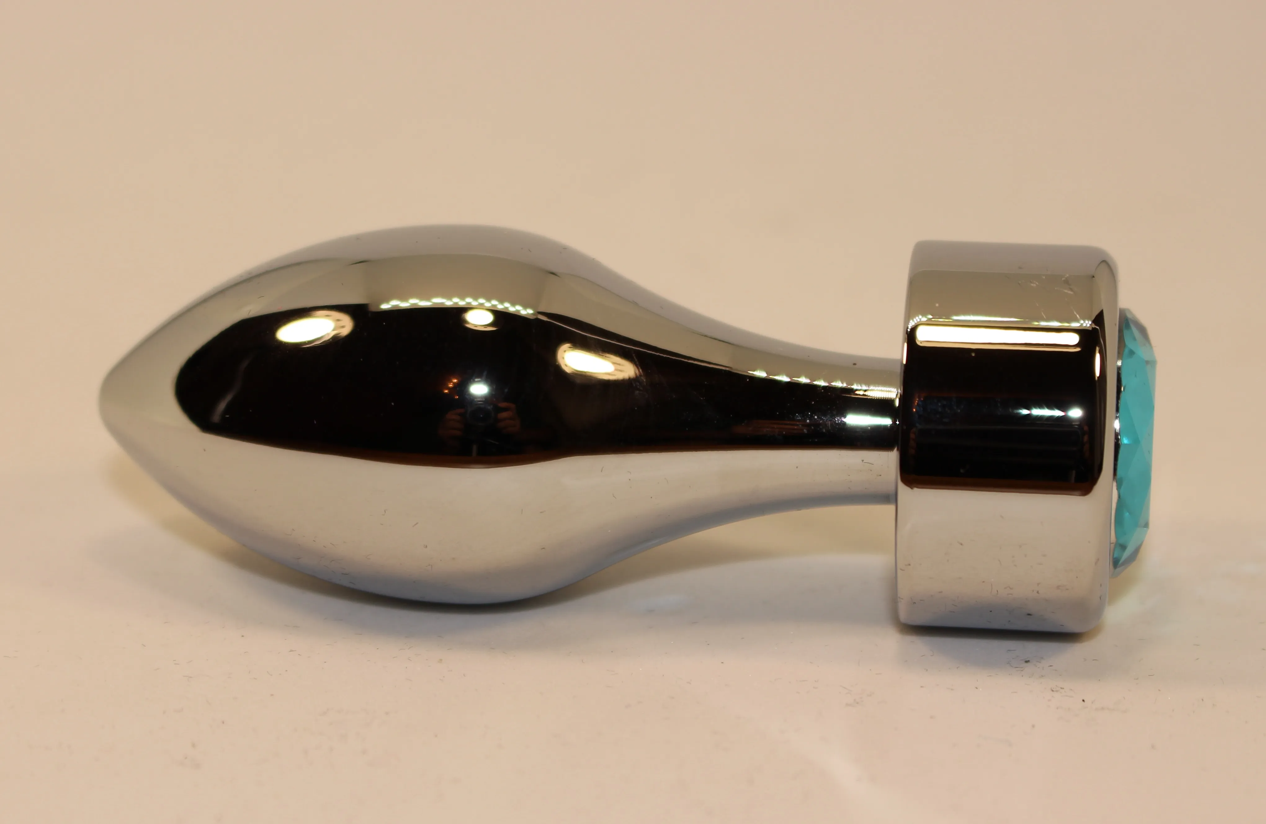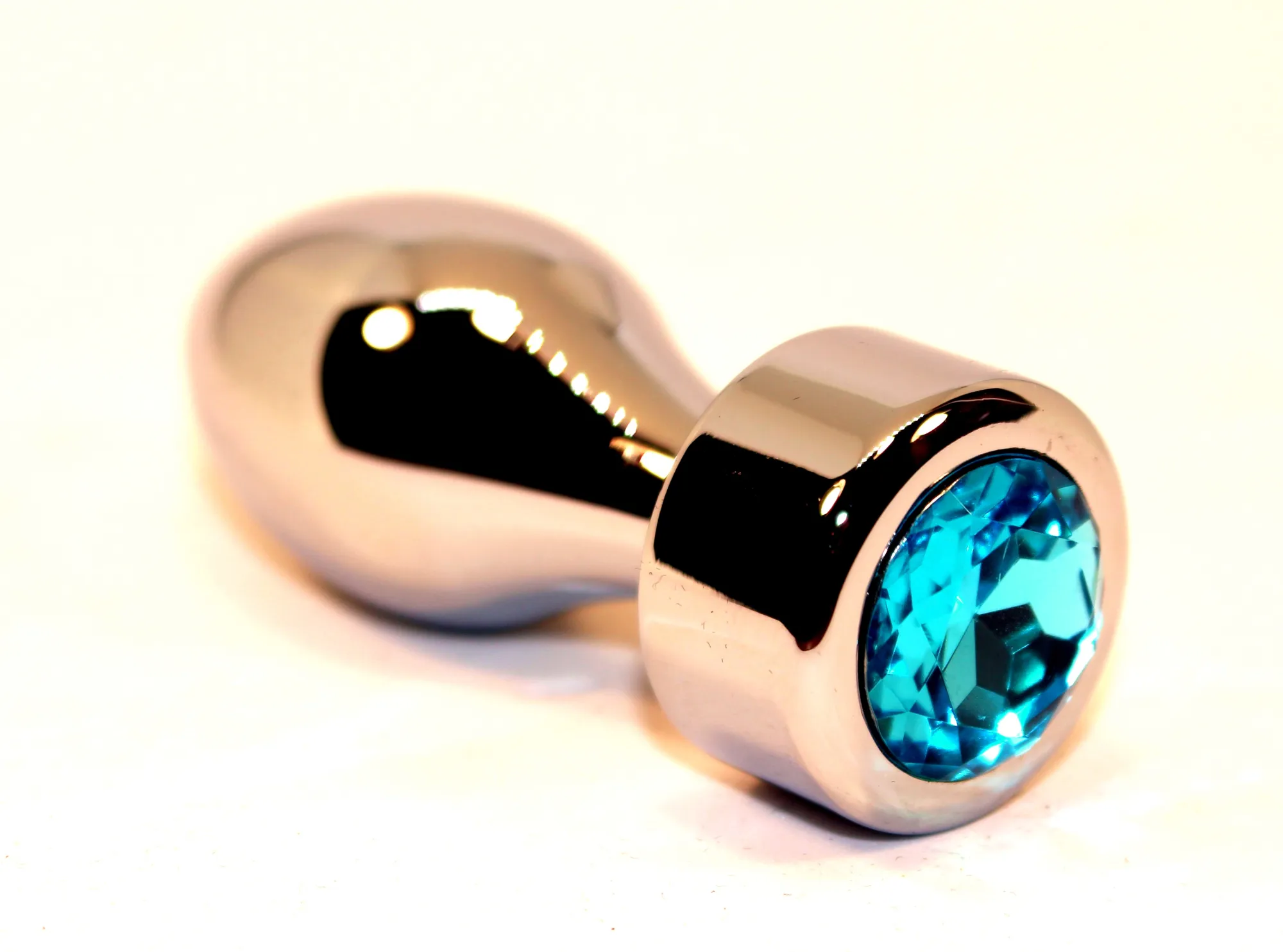 —Анальная пробка металл серебро с голубым стразом 7,8х2,9см 47444-1MM