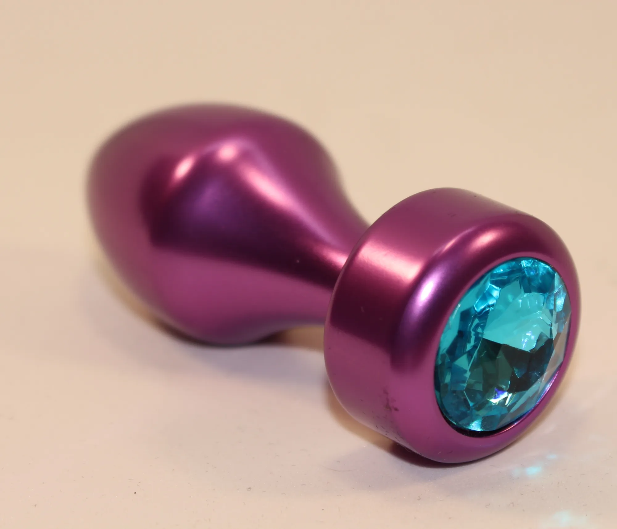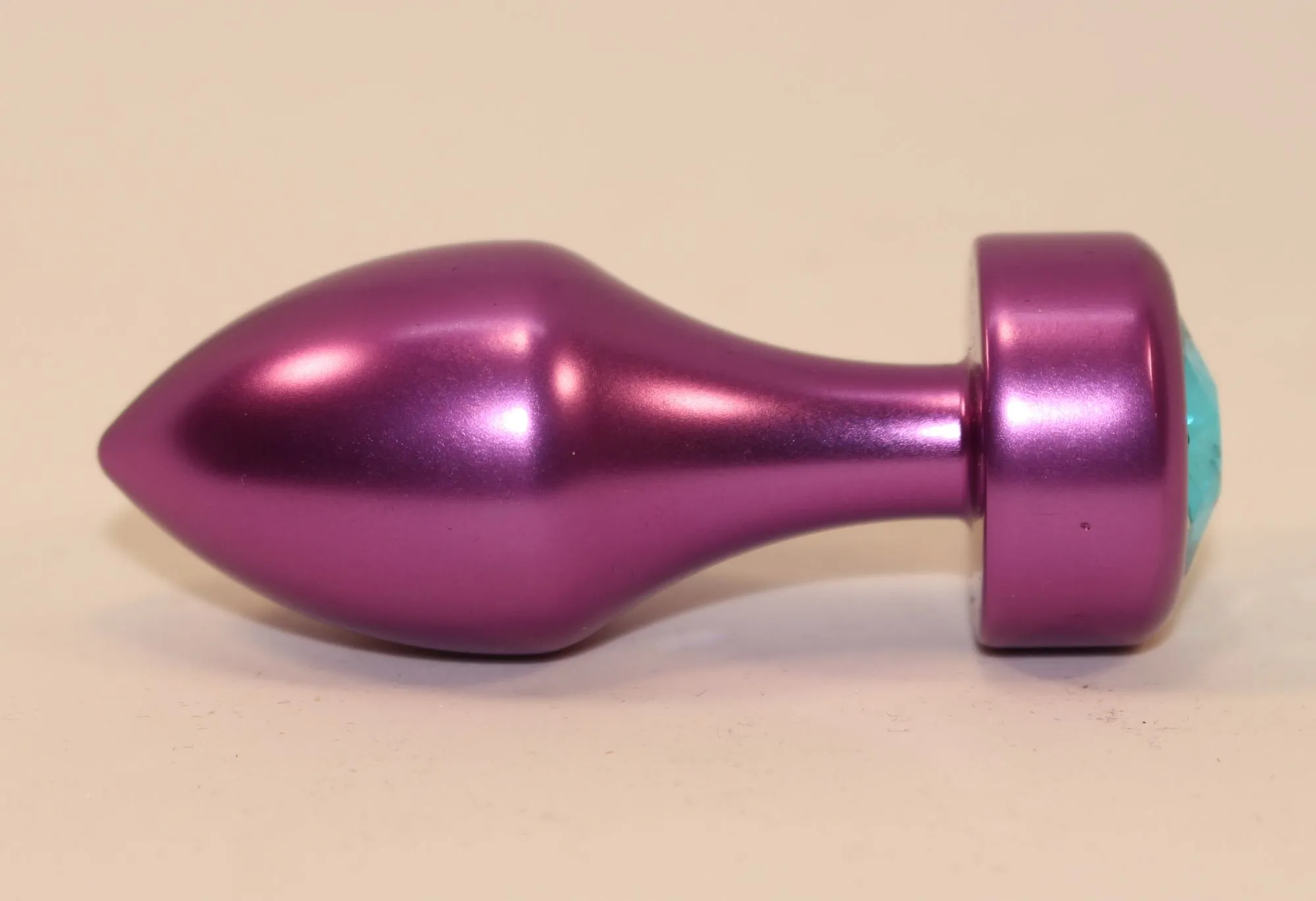 —Анальная пробка металл фиолетовая с голубым стразом 7,8х2,9см 47445-1MM