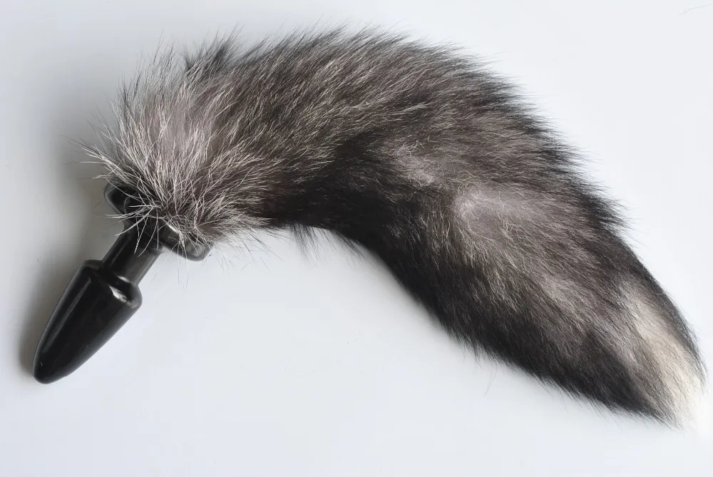 Анальная пробка черного цвета с cерым лисьим хвостом. Характеристика: материал- силикон, ТПР, искусственный мех. Общая длина- 11 см, рабочая длина- 9 см, максимальный диаметр- 3,5 см. Упаковка: полиэтиленовый пакет.