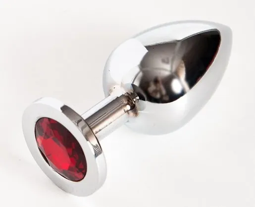 Анальная пробка серебро с красным стразом 9,5х4см 47017-2-MM