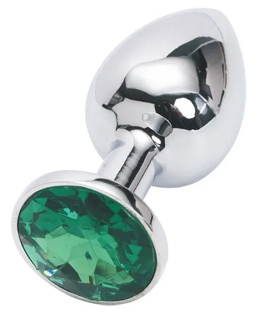 —Анальная пробка серебряная с зеленым кристаллом S 2,8 х 7,6 47046-MM