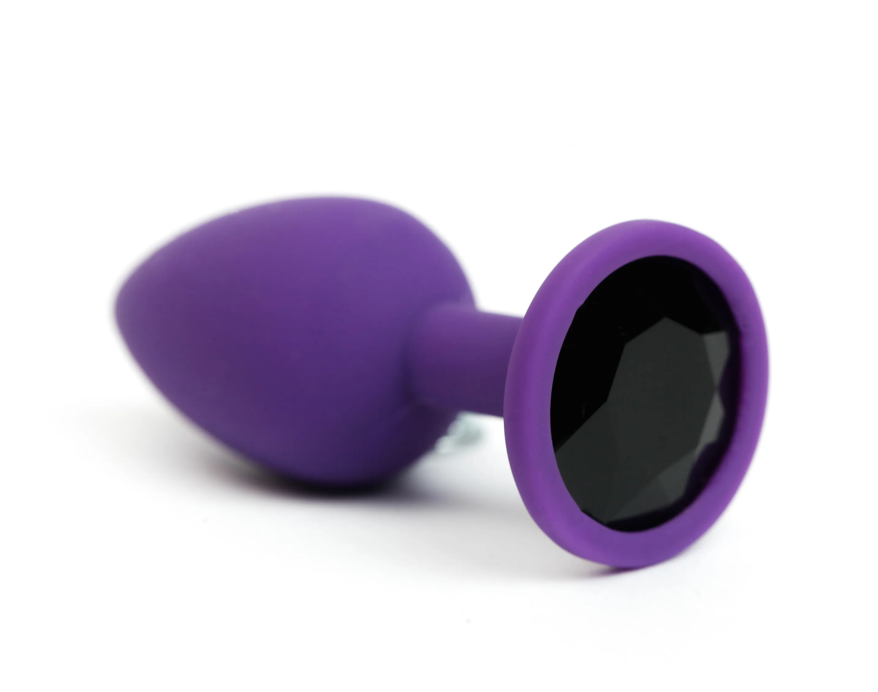 —Анальная пробка силиконова фиолетовая с черным стразом 7,6х2,8 см 47513-MM
