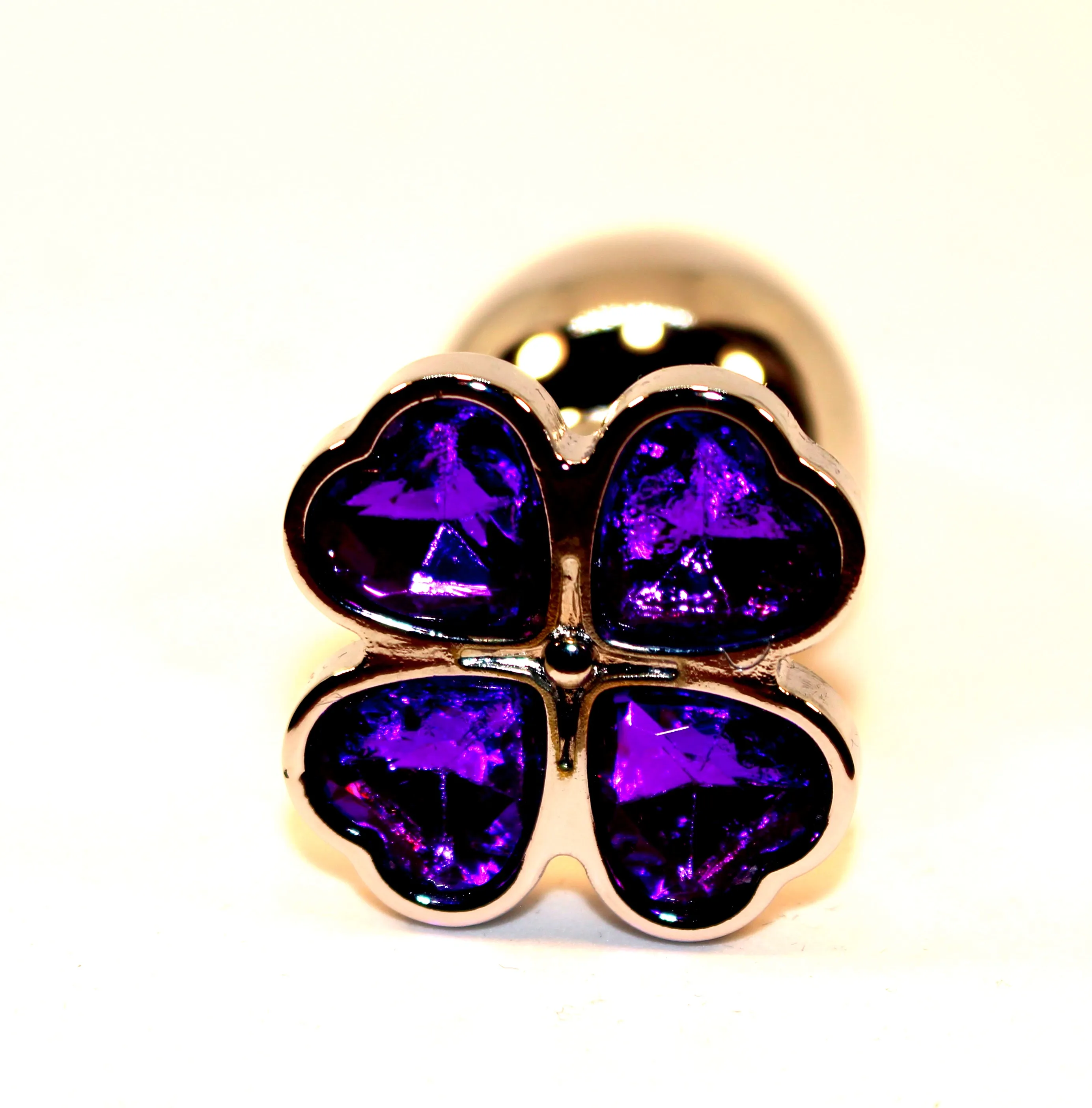 Пробка анальная металл 7,5х2,8см с сердечком фиолетовый страз 47439-5MM