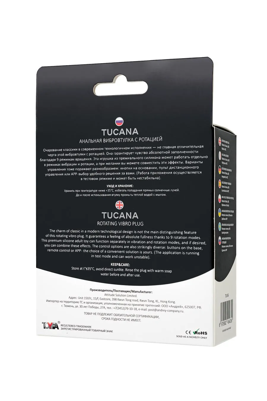 Tucana станет идеальной для тех, кто хочет испытать новые ощущения от анальной стимуляции, вне зависимости от опыта. Удобные размеры и наличие стоппера делают ее безопасной и комфортной для использования как новичками, так и опытными пользователями.