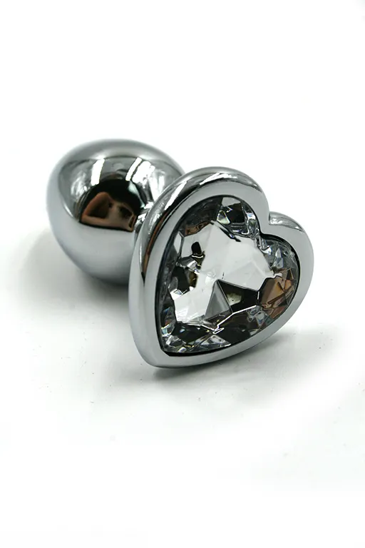 Литая анальная пробка имеет конусообразную форму. Гладкая фактура шлифованного металла создается вручную. Легкий и прочный алюминиевый сплав гарантирует долговечность и гигиеничность, а также абсолютную безопасность даже при постоянном ношении. Крупный граненый кристалл в форме сердца в основании имеет специальное светоотражающее покрытие дна для усиления блеска и более яркого и красочного вида.
