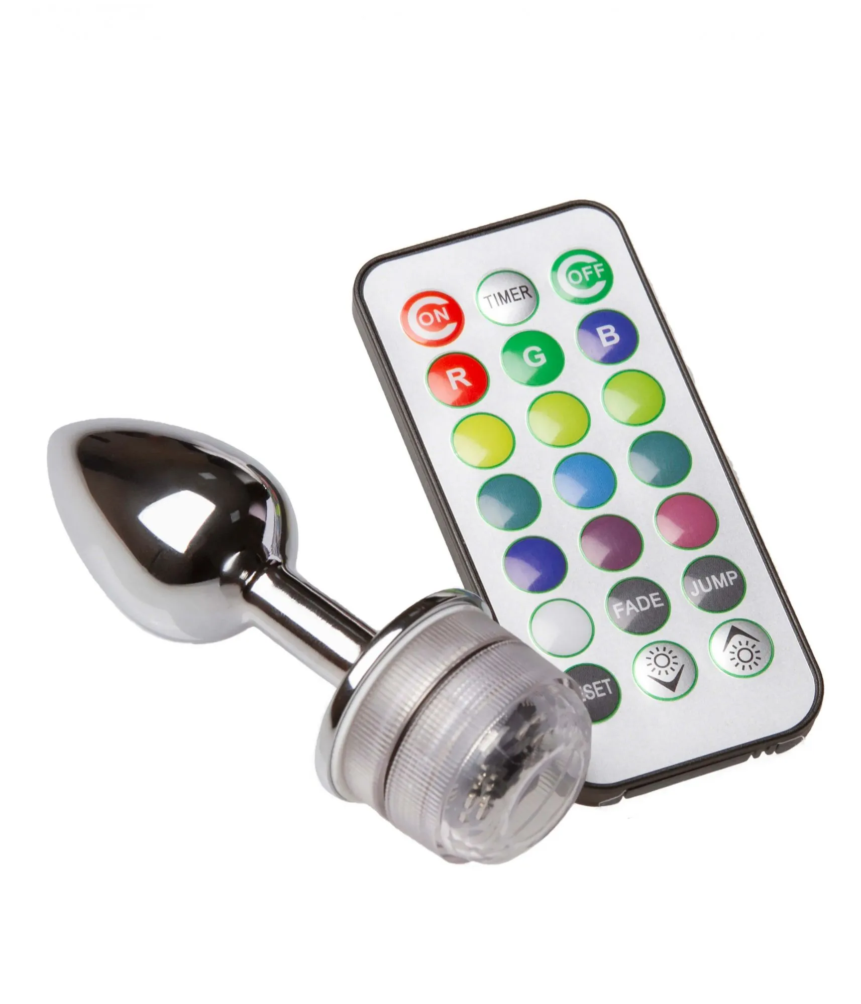 Эта металлическая игрушка, предназначенная для анального проникновения, отличается необычным и современным украшением - поверхностью со светодиодами, светящейся в разных режимах и пультом дистанционного управления, идущим в комплекте. Помимо яркого свечения, пробка стимулирует зоны ануса, и промежности, подходит для массажа простаты.