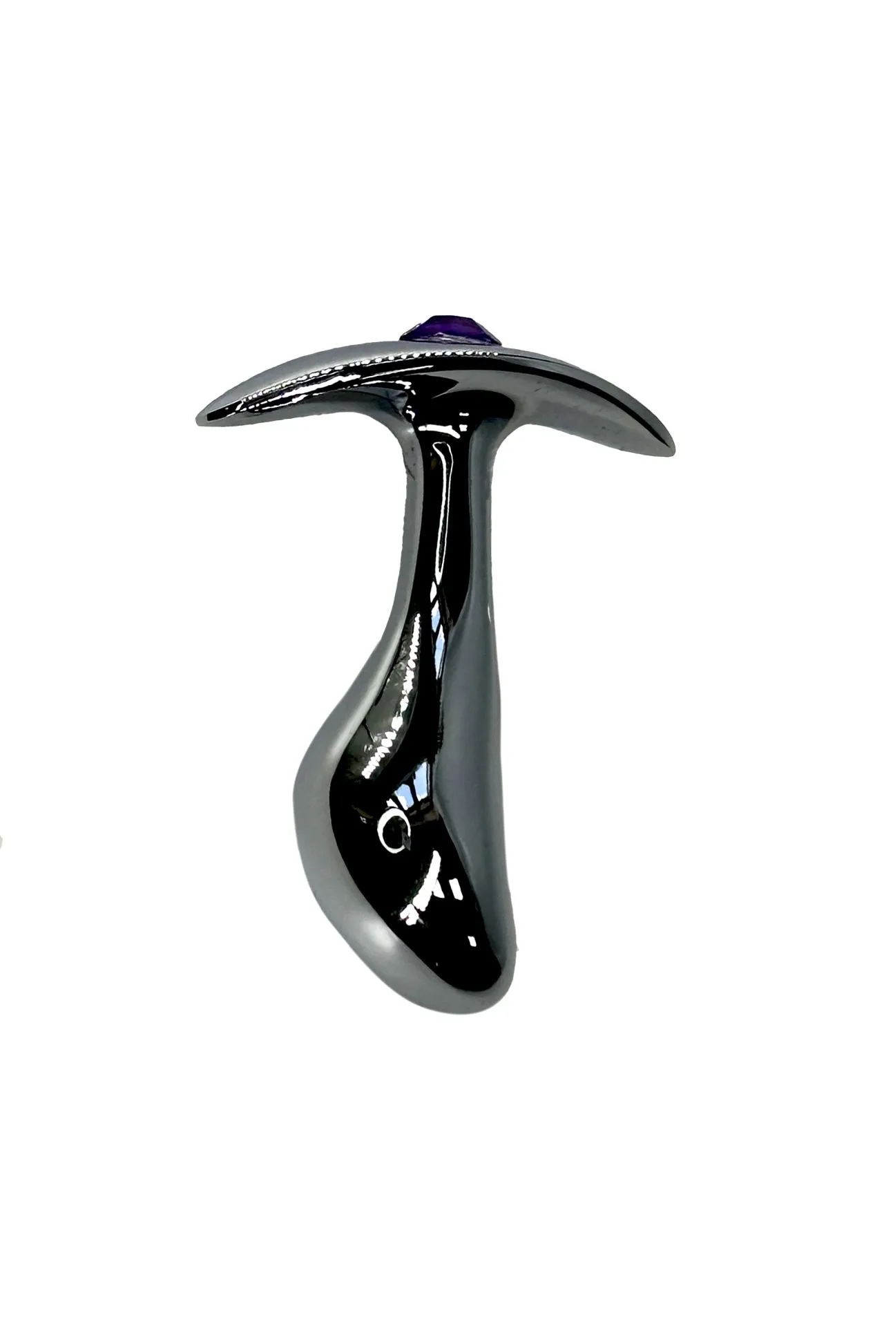 Анальная пробка с маленьким фиолетовым кристаллом (стразом) – это декоративное украшение, имеющее проникающую анальную часть и анатомически изогнутое основание, что позволяет носить пробку внутри тела и использовать во время полового акта. Идеально подходит для украшения тела, сужения влагалища, подготовки к анальному сексу.