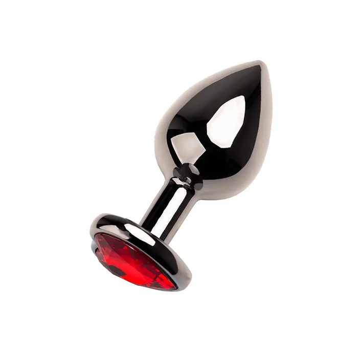 Анальная пробка PinkRabbit Shade металлическая с красным кристаллом-сердцем, размер S, темн серебро