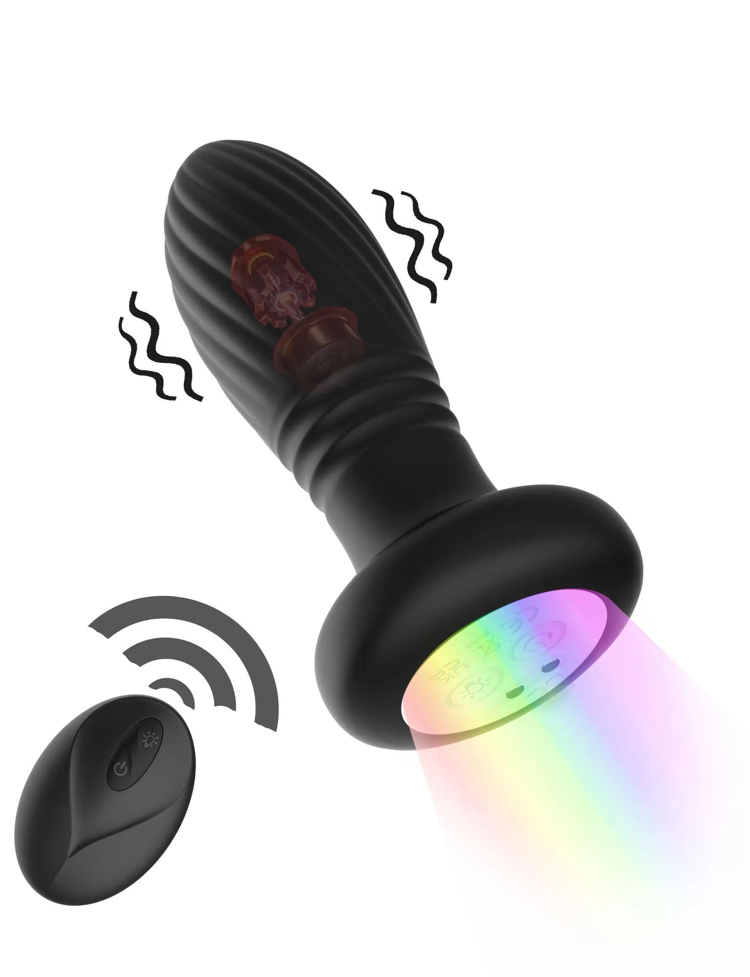 Анальная пробка с вибрацией и фрикционным механизмом, оснащенная дистанционным управлением и LED-подсветкой, создана для усиленной стимуляции и незабываемых ощущений. Игрушка предлагает 9 режимов вибрации и 9 режимов фрикций, которые обеспечивают интенсивные анальные оргазмы. Изготовленная из гладкого, шелковистого силикона, пробка безопасна для тела, а ее мягкость и эргономичный дизайн гарантируют комфорт даже при длительном использовании. Особенности включают LED-подсветку, которая придает интимной обстановке блеск, а также водонепроницаемость, позволяющую использовать пробку в душе или ванной, и магнитную зарядку, обеспечивающую лучшую влагозащиту и долговечность устройства. Длина общая 12,5см. длина рабочая 10см. Диаметр пробки 3,9см. Диаметр стоппера 5см. Время зарядки — 70 минут, а время работы — 50 минут. Управляется пробка с помощью пульта дистанционного управления.