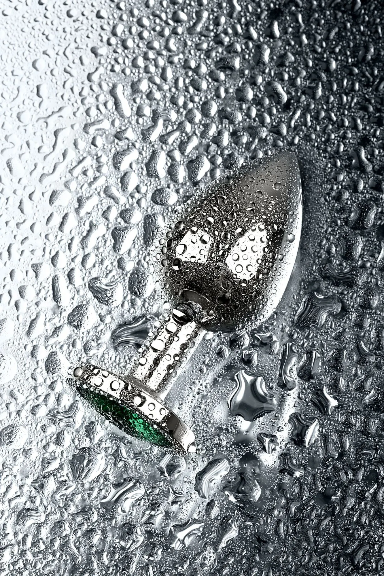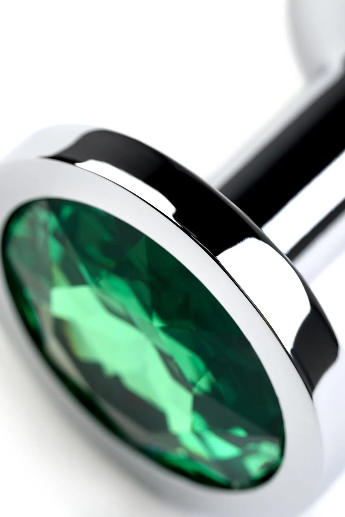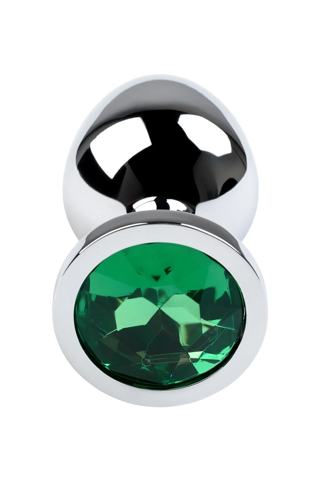—Анальная втулка Metal by TOYFA, металл, серебряная, с зеленым кристаллом, 8 см, Ø 3,4 см, 85 г