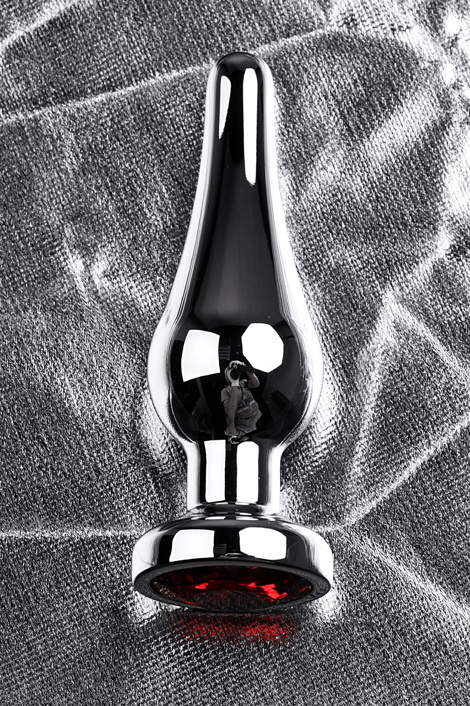 Анальная втулка Metal by TOYFA, металл, серебряная, с красным кристаллом
