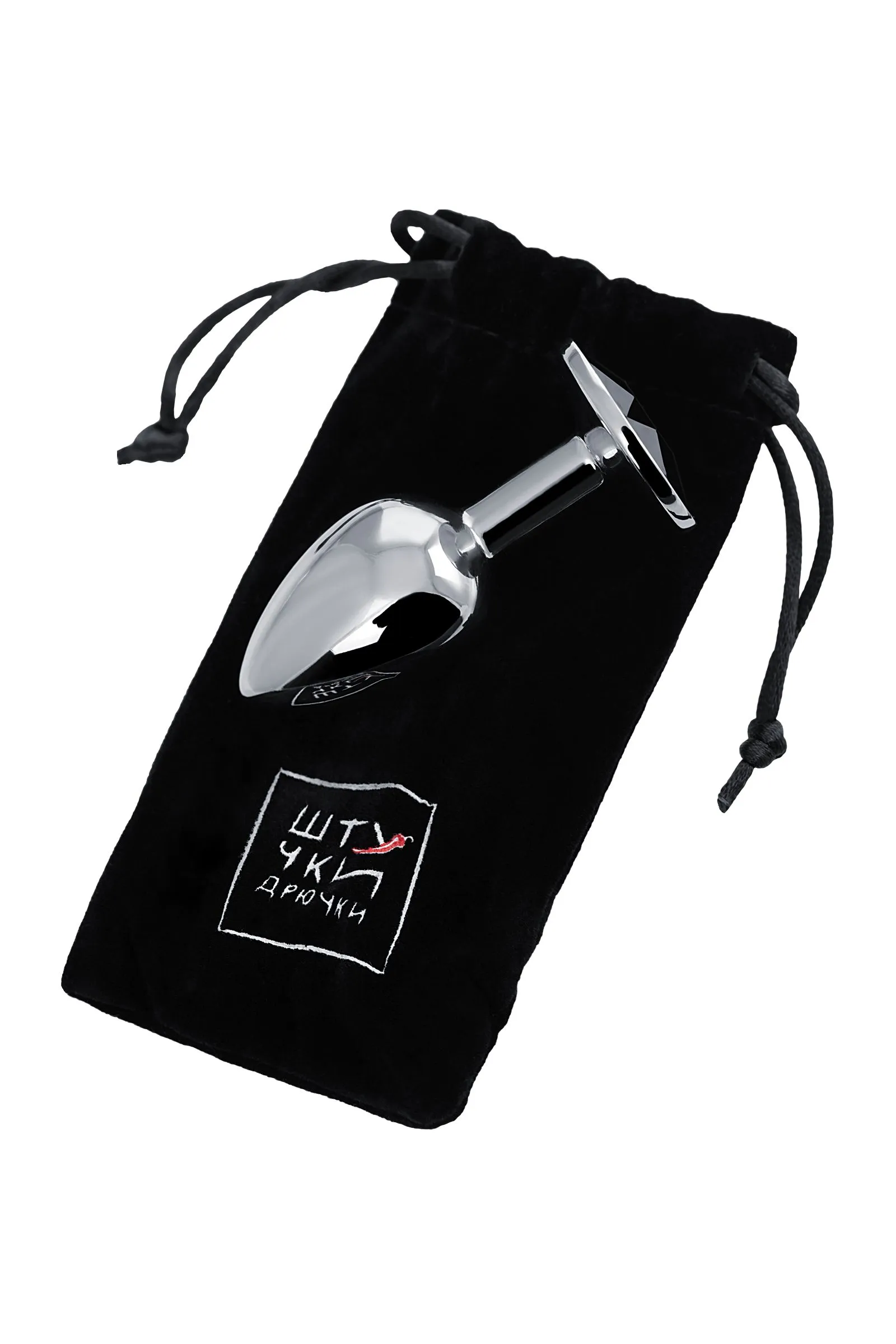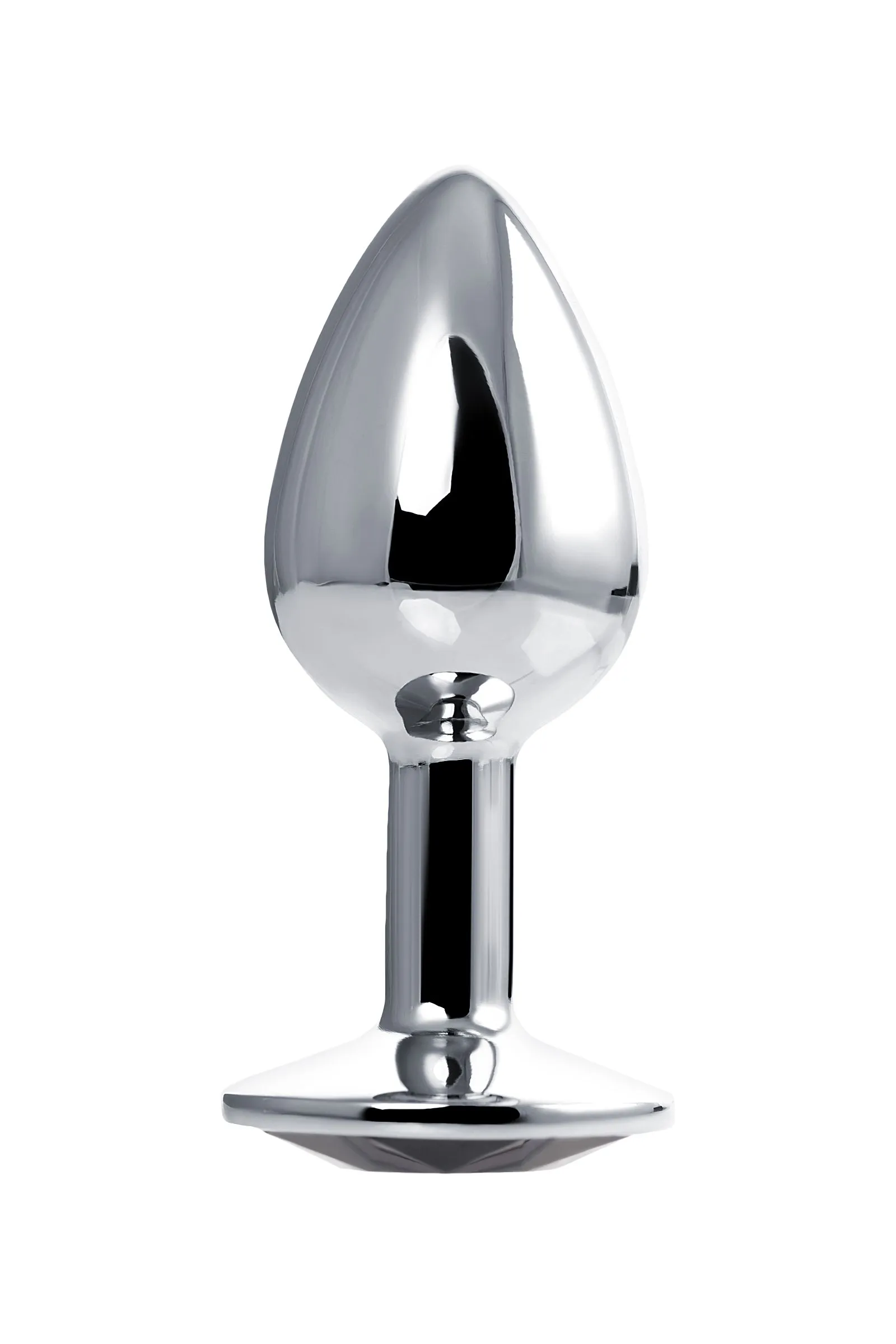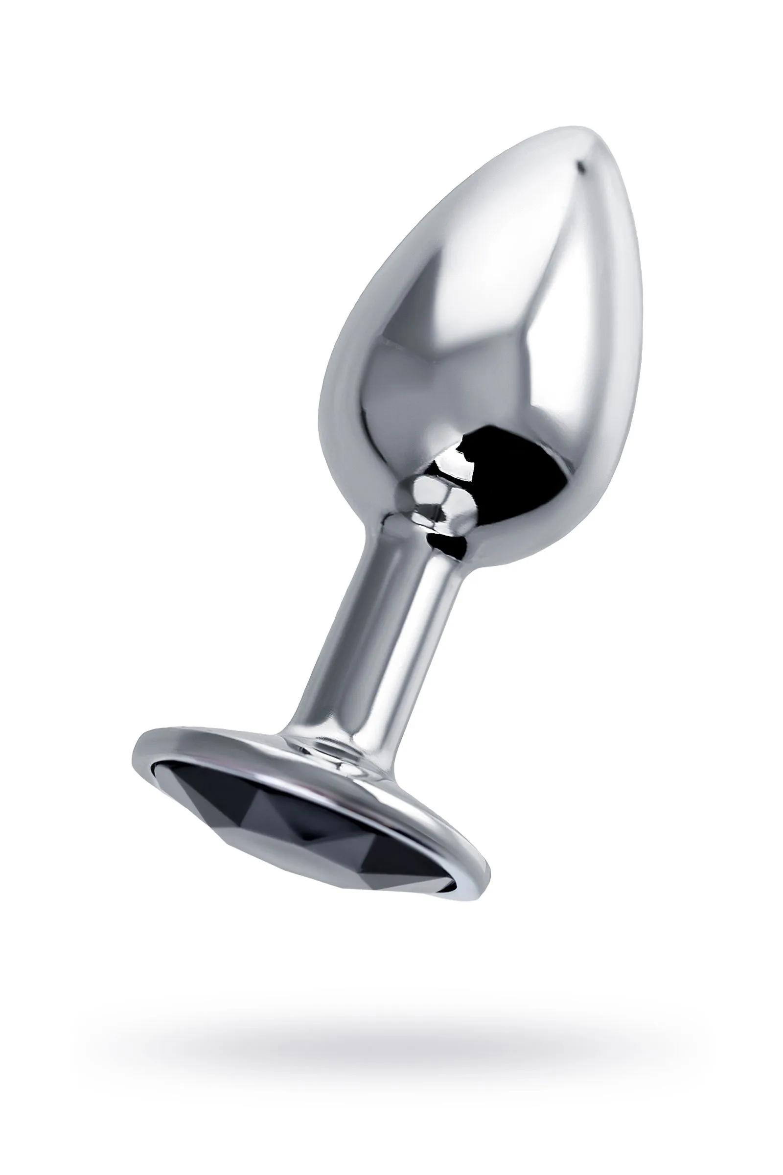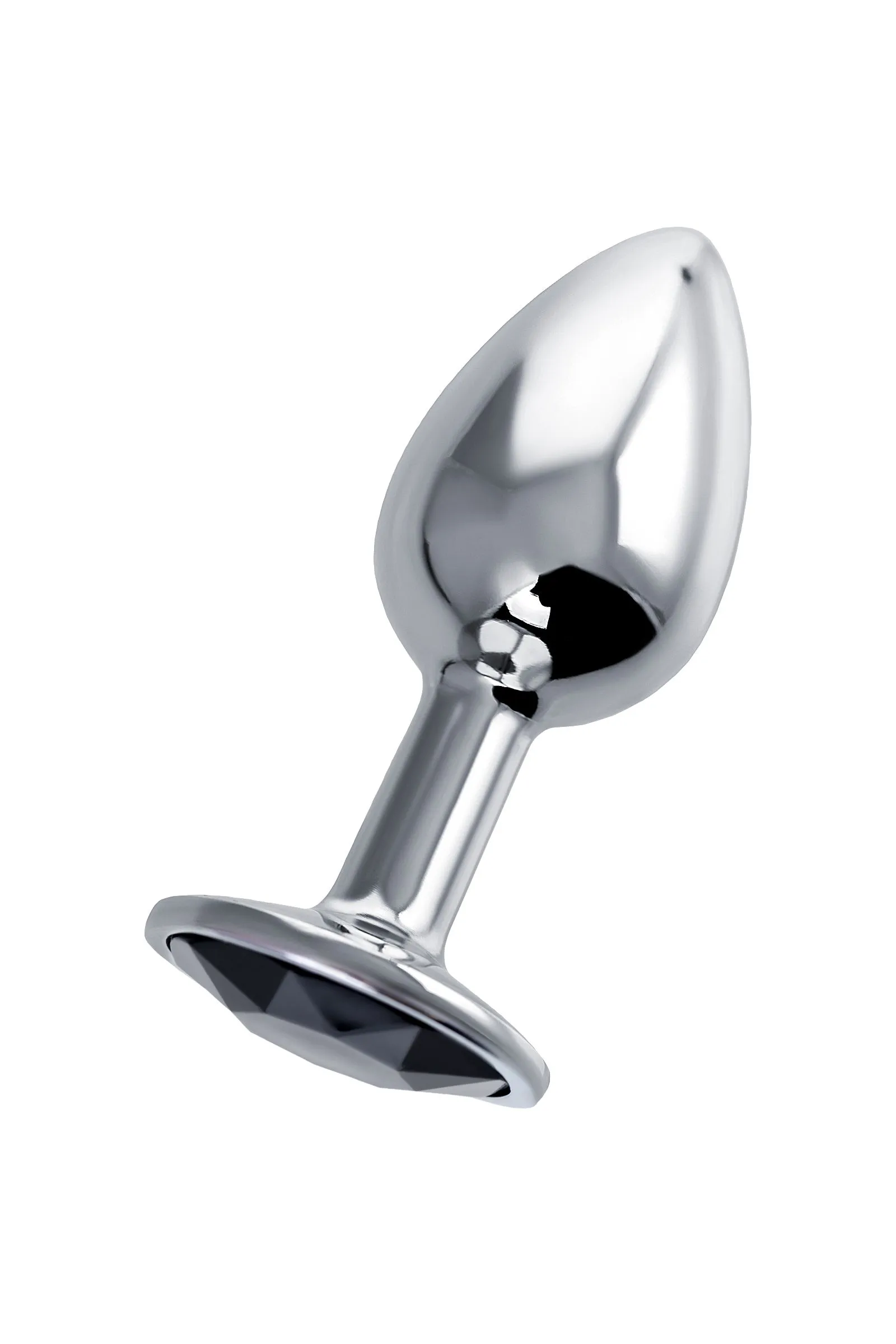 —Анальная втулка Штучки-Дрючки, серебряная, с чёрным кристаллом, Ø 2,5 см, 48 г