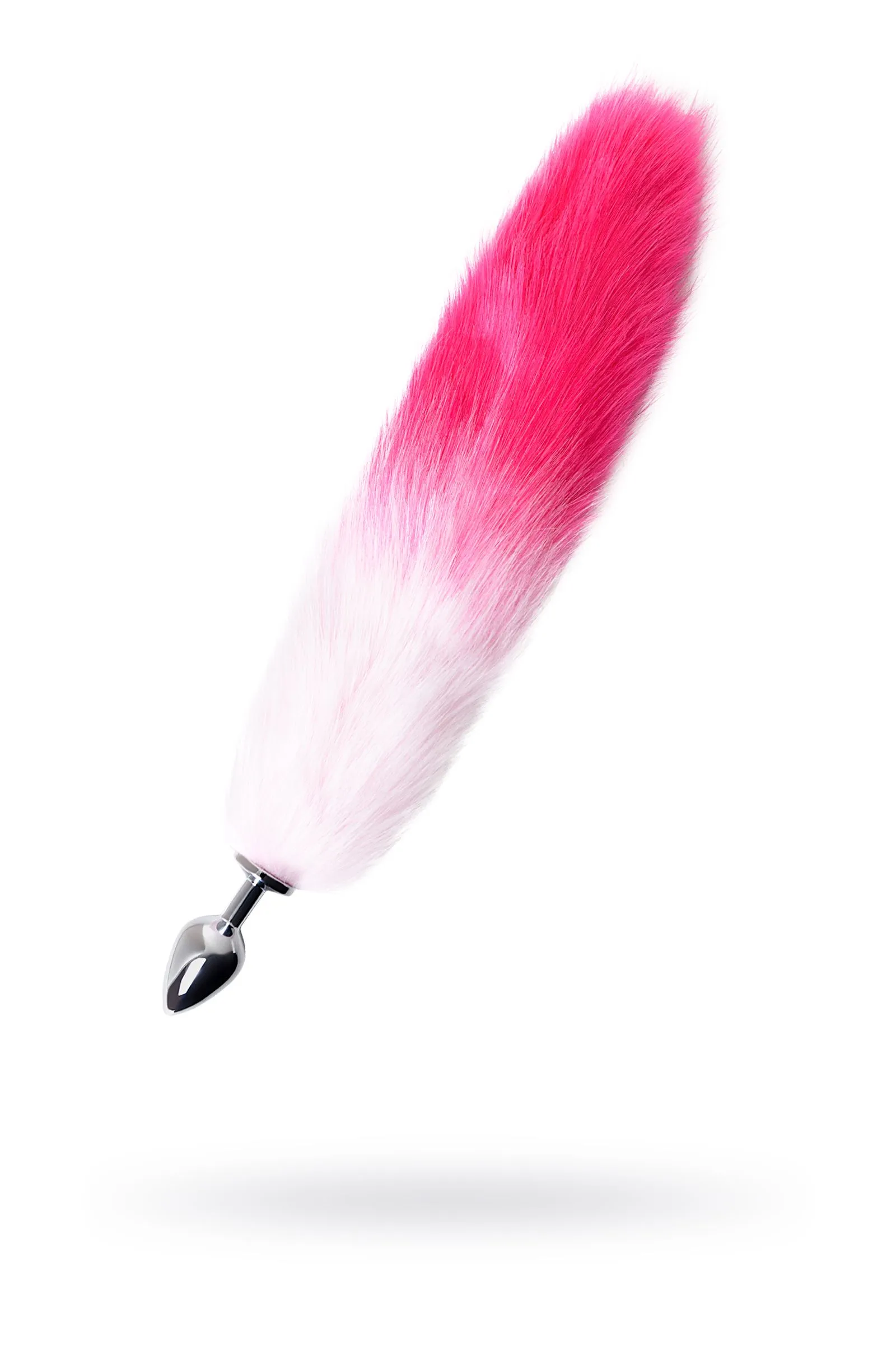 Анальная втулка Metal by TOYFA с бело-розовым хвостом, металл, серебряная, 45 см, Ø 2,7 см