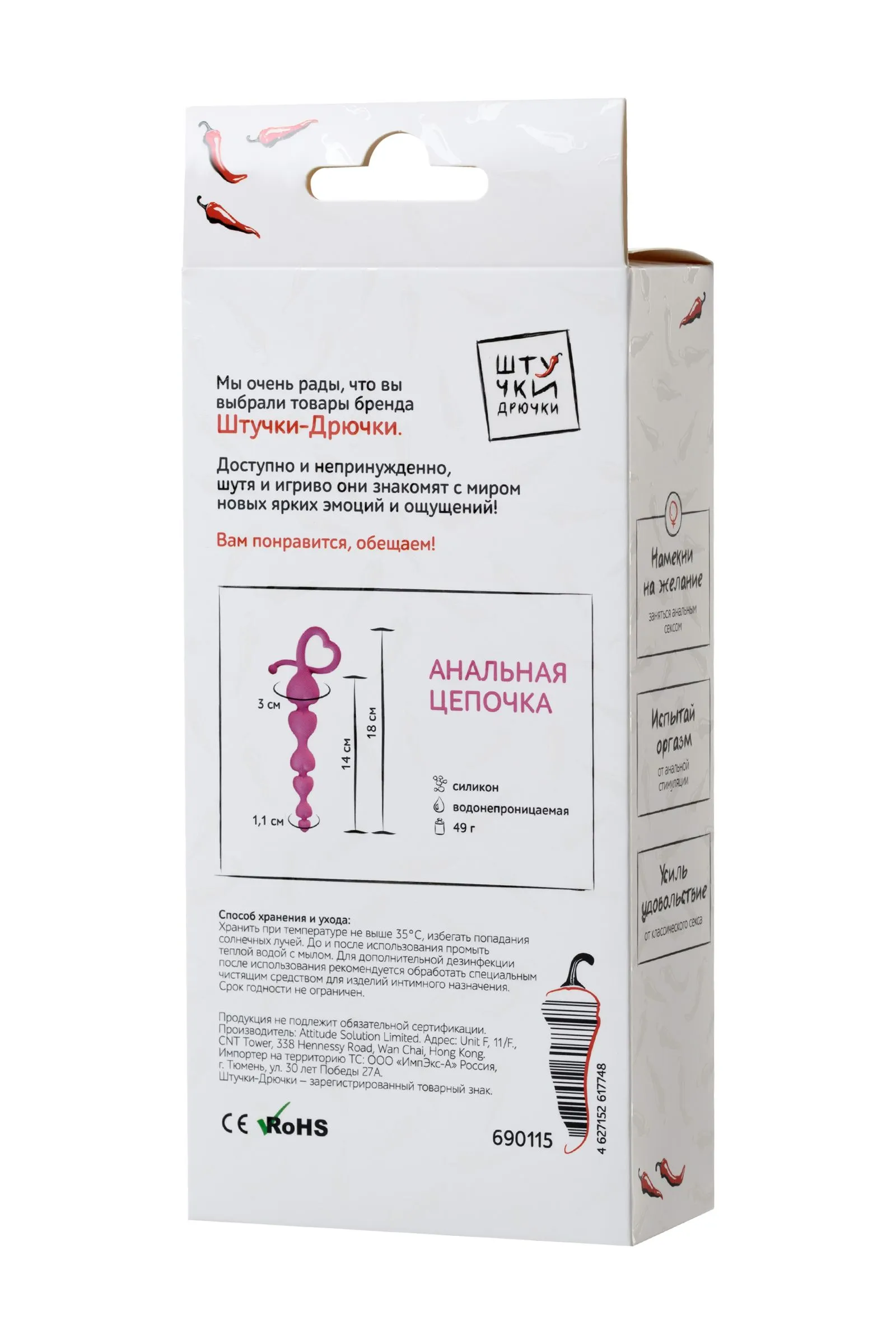 Специальная форма из постепенно увеличивающихся в диаметре сердечек обеспечивает легкое и комфортное введение. Размер сердечек подойдет новичкам и опытным любителям. Легко извлекается с помощью петельки-сердца. Гибкий материал позволяет комфортно менять позы во время секса.